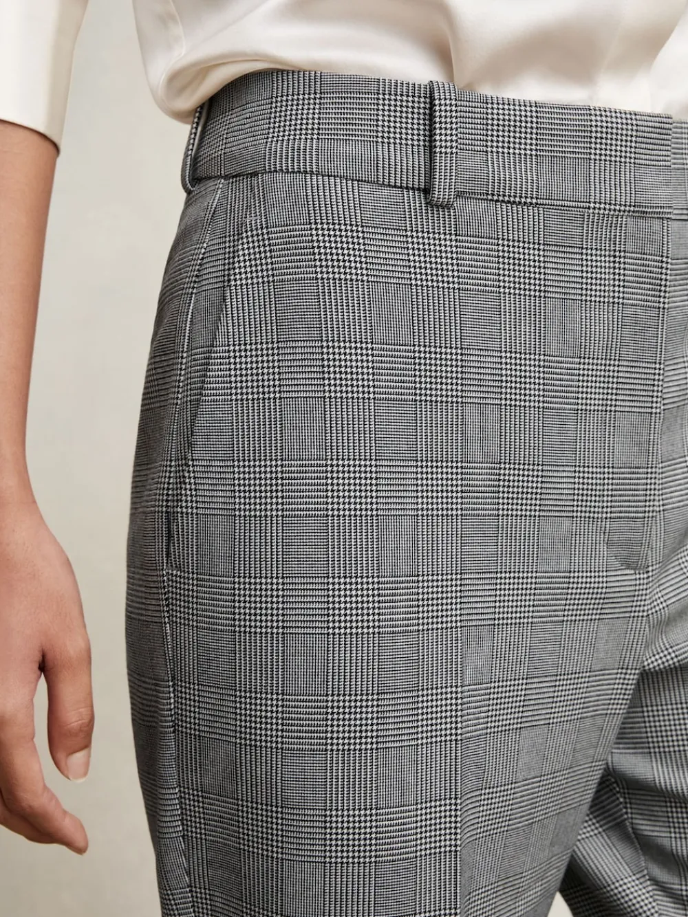 Expertly crafted from premium suiting in a classic Prince of Wales check, the Brooklyn trousers are a perfect choice for refined occasions. They’re tailored to a slim leg, with pressed creases that sharpen the silhouette.Prince of Wales checkSlim fitSide slip pocketsDouble hook-and-bar with zip The model is wearing a size 8 Measurements of model: Height 5ft 9″ / 175cm Dry clean only. 68% Polyester, 29% Viscose, 3% Elastane.