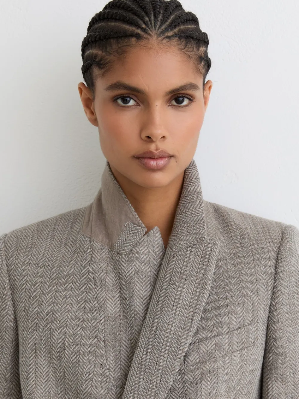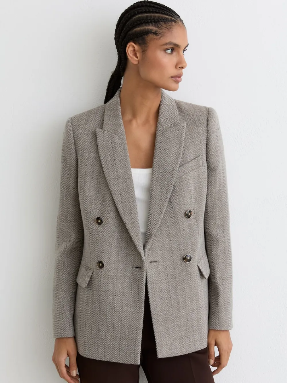 The Ember blazer is crafted from a wool-cotton blend in a classic herringbone weave. It’s double-breasted, with peak lapels and a four-button front.Wool-cotton blendHerringbone weaveDouble-breastedPeak lapelsHorn-effect buttonsButton cuffsFlap welt pockets Regular centre back neck to hem 28″ / 71cm. Dry clean only. 56% Wool, 44% Cotton.