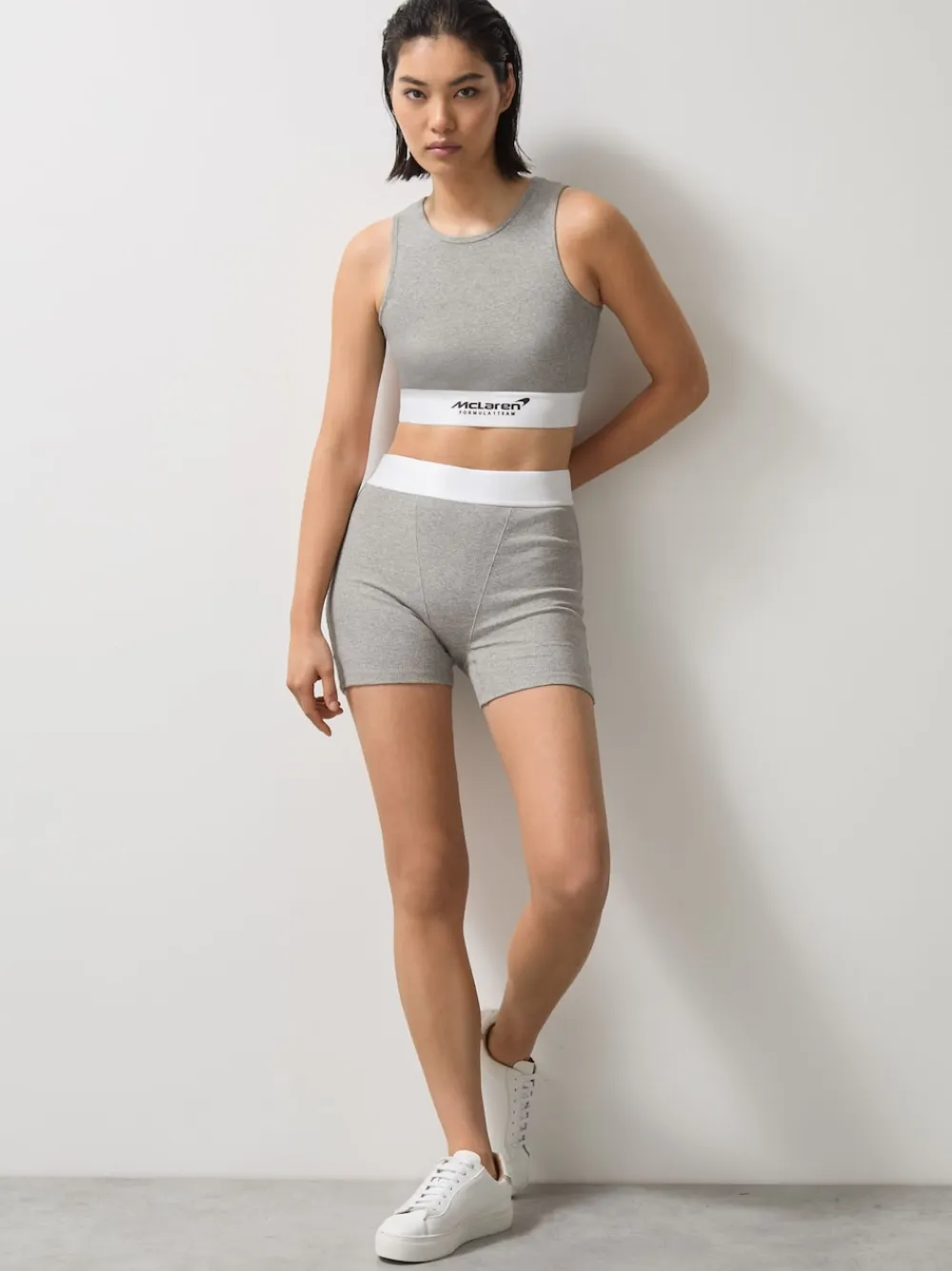 The Sophia boxer shorts are made from stretch-cotton ribbed jerseys, offering both comfort and flexibility. Elevated by an elasticated waistband with a McLaren Formula 1 Team logo, it pairs effortlessly with the matching Cloud cropped vest. Matching vest Stretch-cotton Fine ribbing Elasticated branded waistband Presenting the Reiss x McLaren Formula 1 Team Collection Season 02, our exclusive collaboration with the McLaren Formula 1 Team. The model is wearing a size S. Measurements of model: 5ft 10” / 178cm. Regular inside leg length 4.5″ / 12cm. Machine washable. 97% Cotton, 3% Elastane.