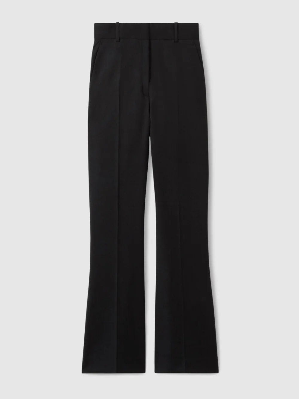 Upgrade your workwear options with the Black Haisley, blended with premium wool yarns for a soft and comfortable wear. They re engineered in a flared silhouette, a flattering style for the figure. Tuck in a white blouse underneath the coordinating blazer for a monochrome office edit. Wool blend Mid-rise Belt loops Zip fly and hook fastening Slip pockets to each hip Pressed creases Buttoned jetted pockets to reverse Flared leg The model is wearing a size 8. Measurements of model: 5ft 9.5” / 176.53cm. Dry clean only. 51% Wool, 47% Polyester, 2% Elastane.
