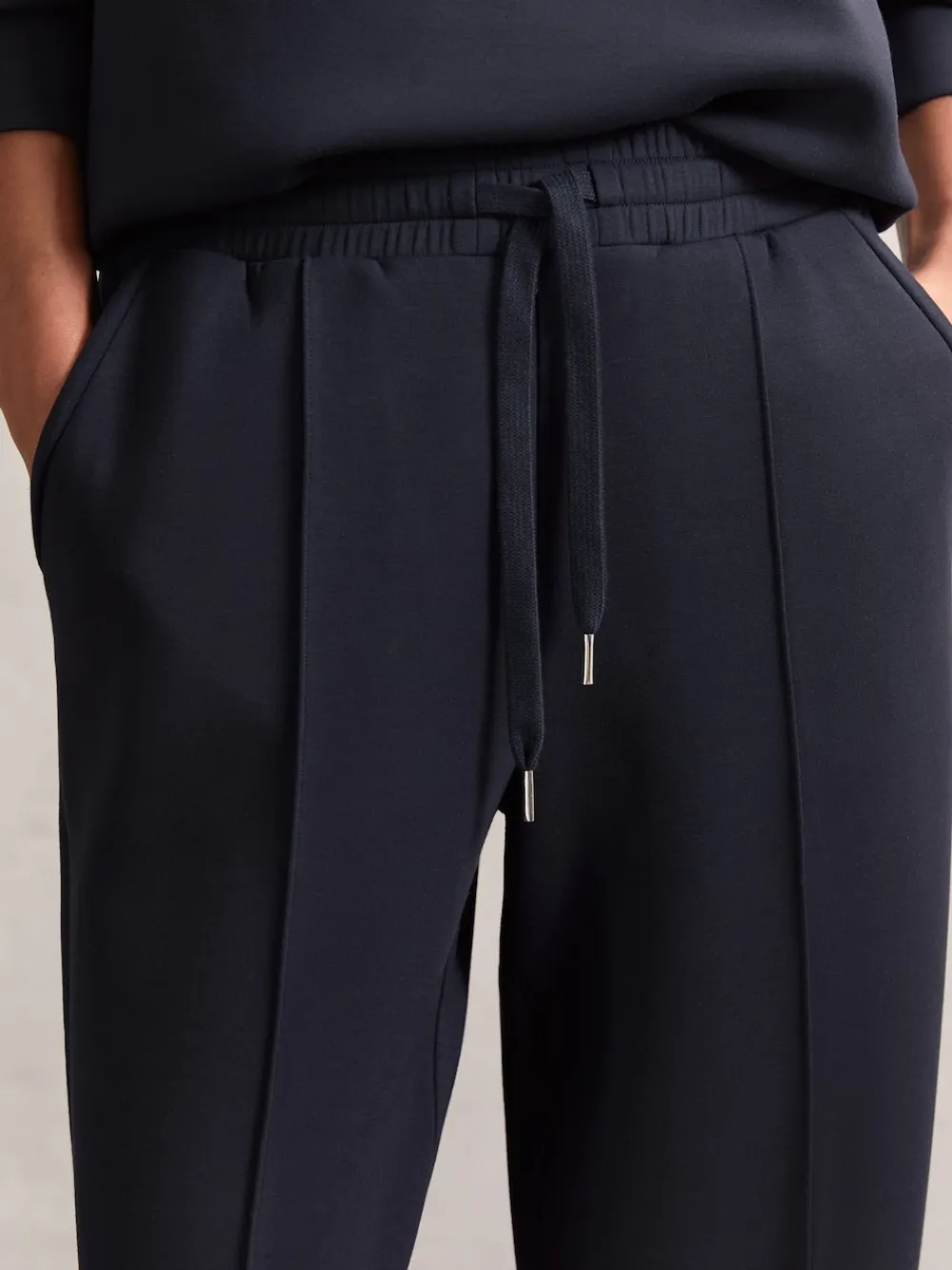 The Jemma joggers are crafted from our premium cloud interlock jersey in a modal-blend, offering a silky-soft handle with a beautiful drape. Featuring wide legs and front pintucks, they offer a relaxed yet polished look, with an elasticated drawstring waist for an adjustable fit. Modal-blend premium interlock jersey Wide leg Front pintucks Side slip pockets Elasticated drawstring waist The model is wearing a size S Measurements of Model: 5ft9 / 175cm Machine washable. 49% Modal, 46% Polyester, 5% Elastane.
