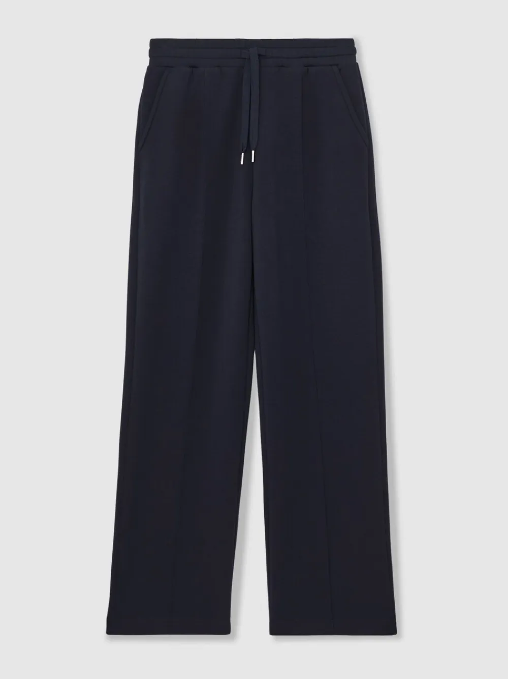 Reiss Jemma Premium Interlock Wide-Leg Joggers Navy Outlet
