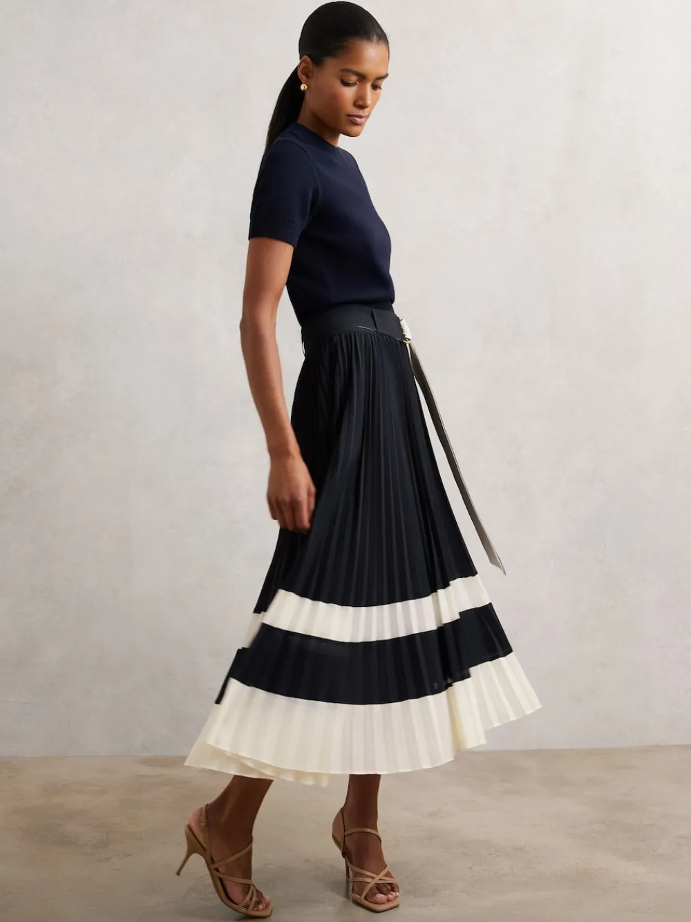 Be the first to review “Reiss Navy/Ivory Goldie Belted Pleated Midi Skirt Sale” Cancel reply