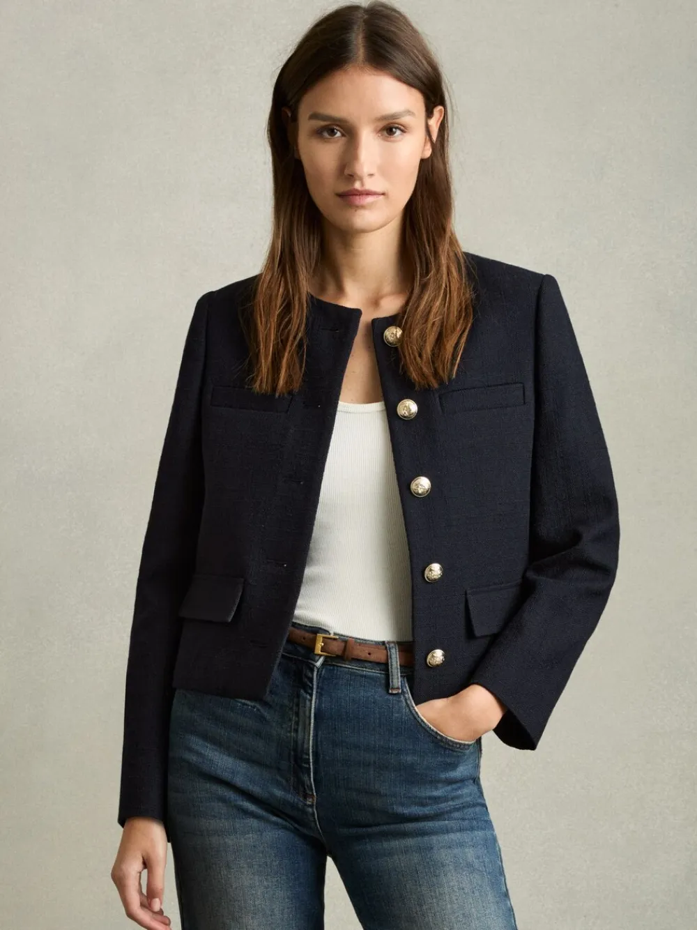 Be the first to review “Reiss Navy Nola Cropped Wool Single Breasted Jacket Sale” Cancel reply