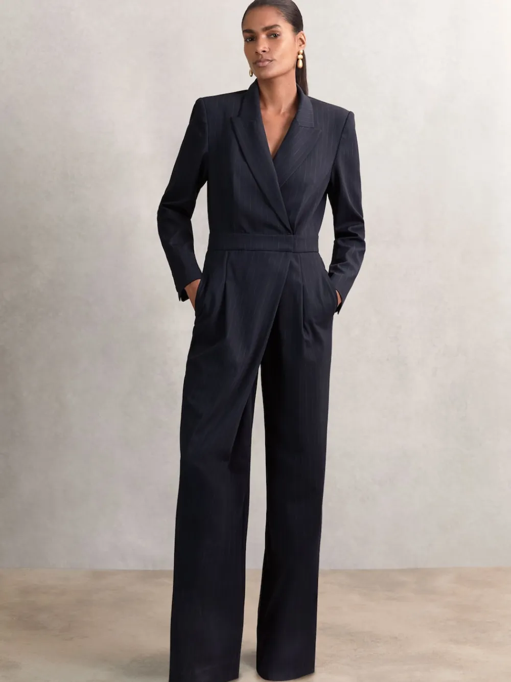 Be the first to review “Reiss Navy Rhoda Pinstripe Tailored Wide-Leg Jumpsuit with Wool Outlet” Cancel reply