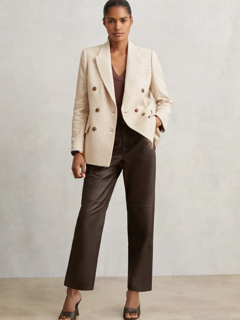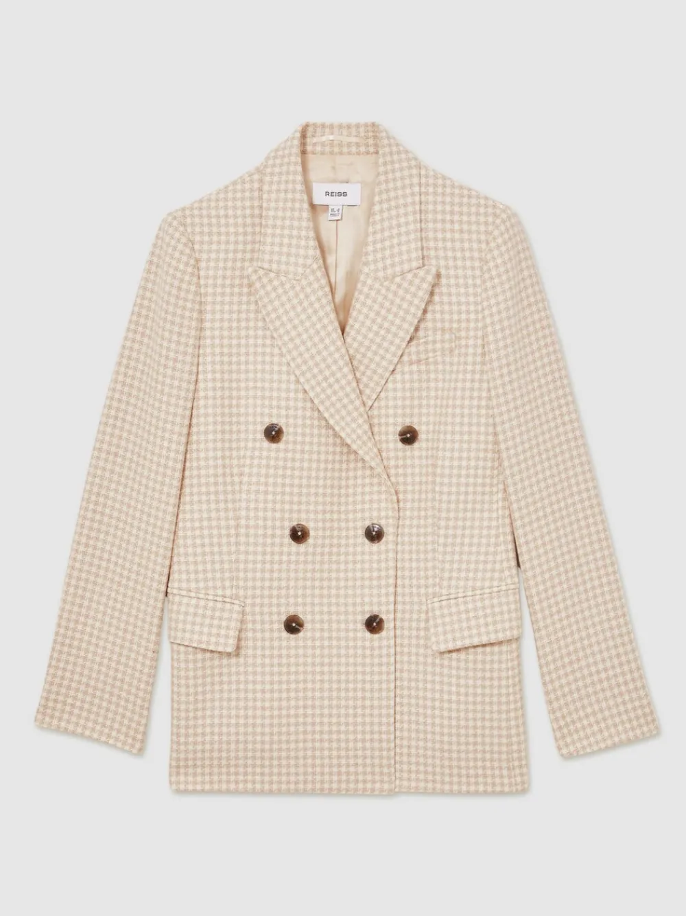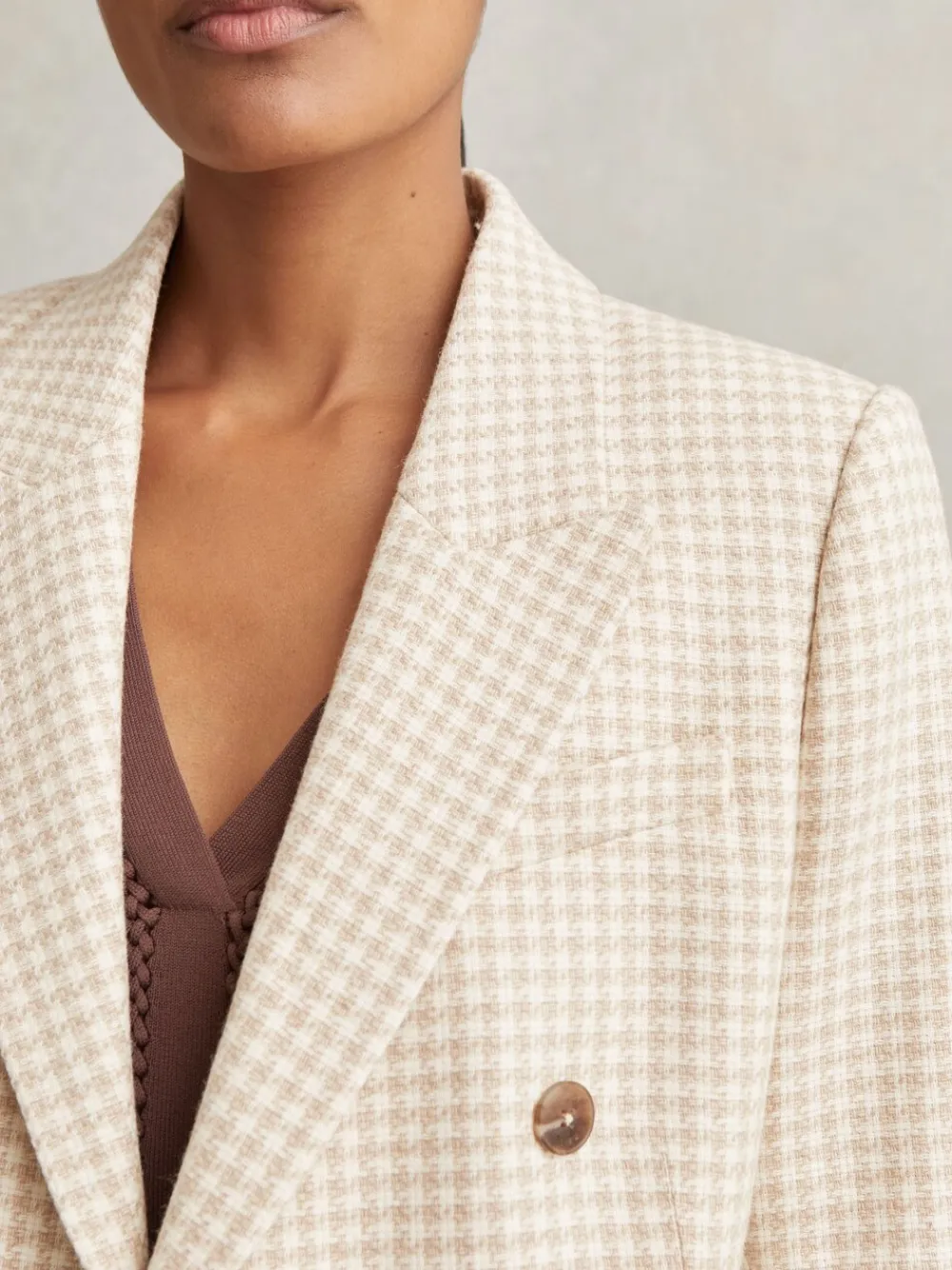 Reiss Neutral Check Bella Double Breasted Check Blazer With Wool New