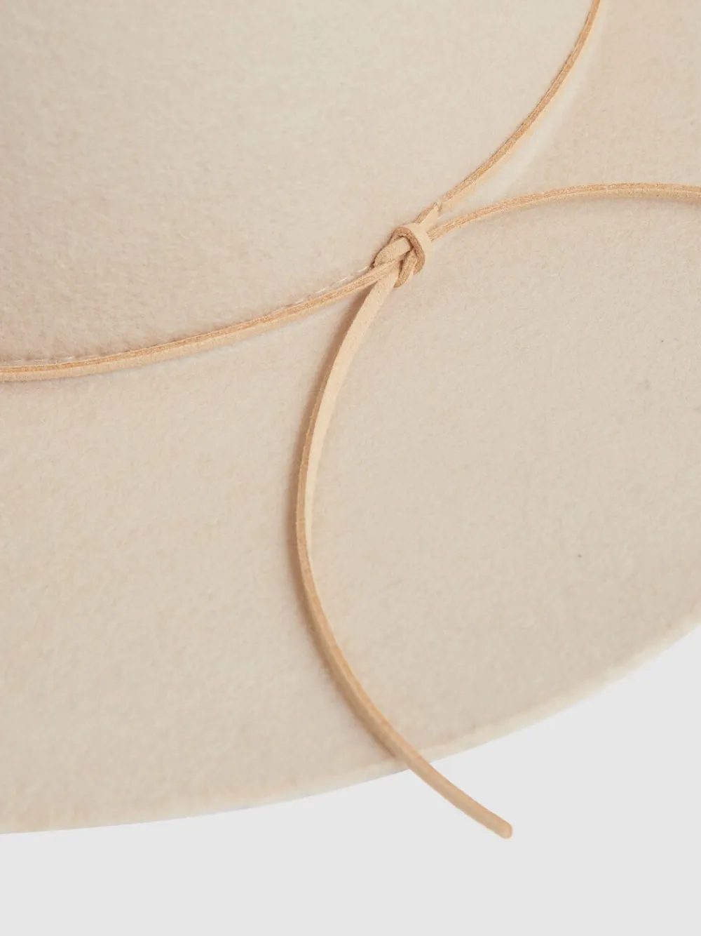 Crafted from felted wool, the Lucy sun hat combines a rounded crown with a wide brim for elegant sun protection. Finished with a leather ribbon tie, it offers understated, timeless style. Felted wool. Leather ribbon tie. Wipe clean only. 100% Wool.