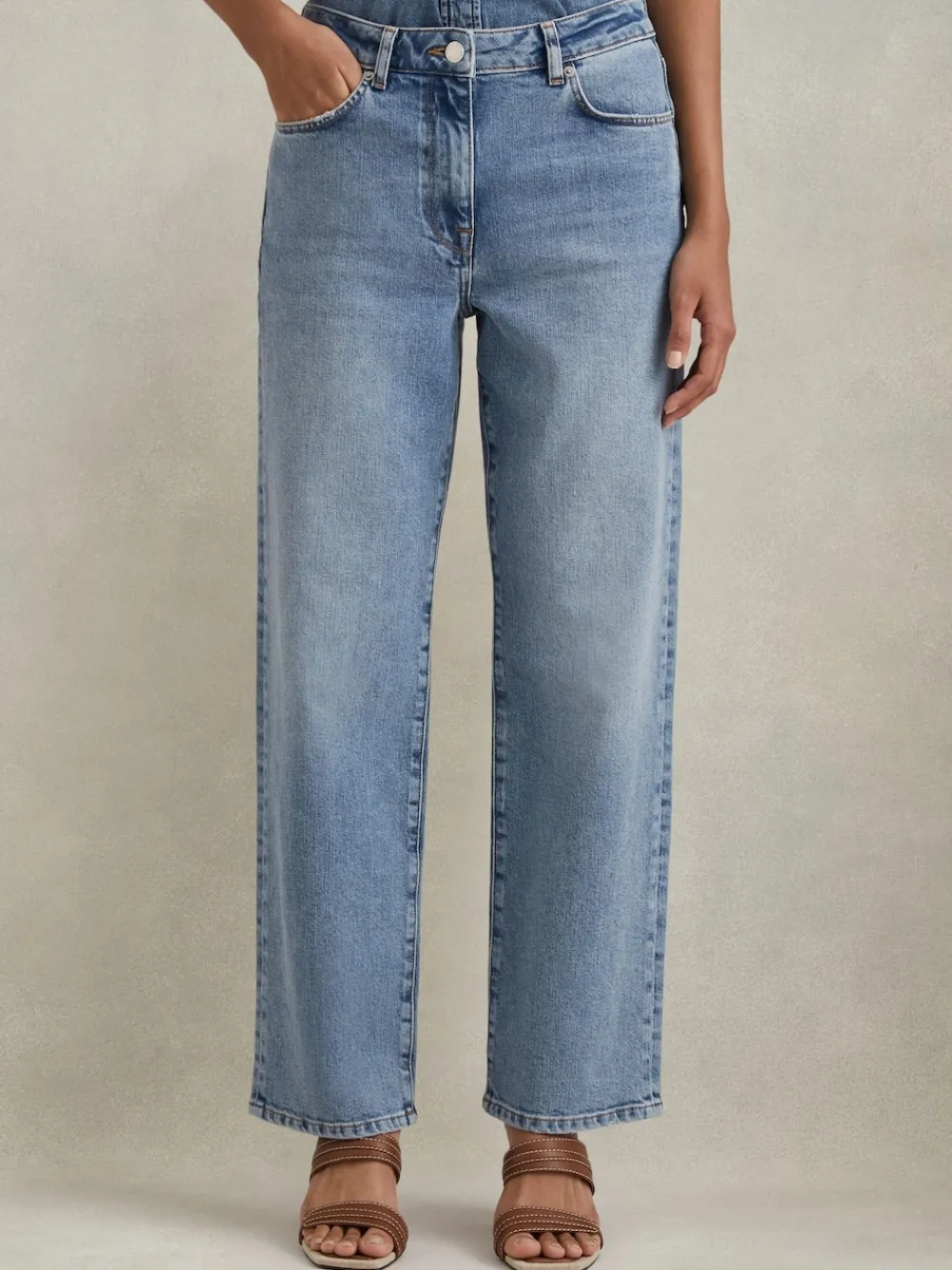 Reiss Selin Petite Mid Rise Straight Leg Jeans Light Blue Hot