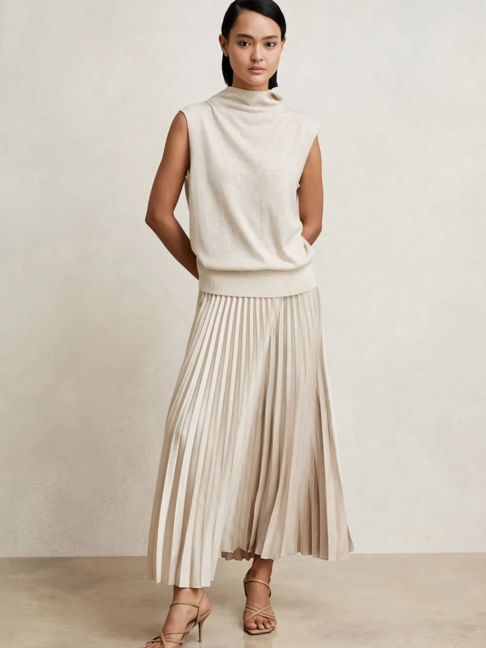 Be the first to review “Reiss Seren Pleated Midi Skirt Champagne Neutral New” Cancel reply