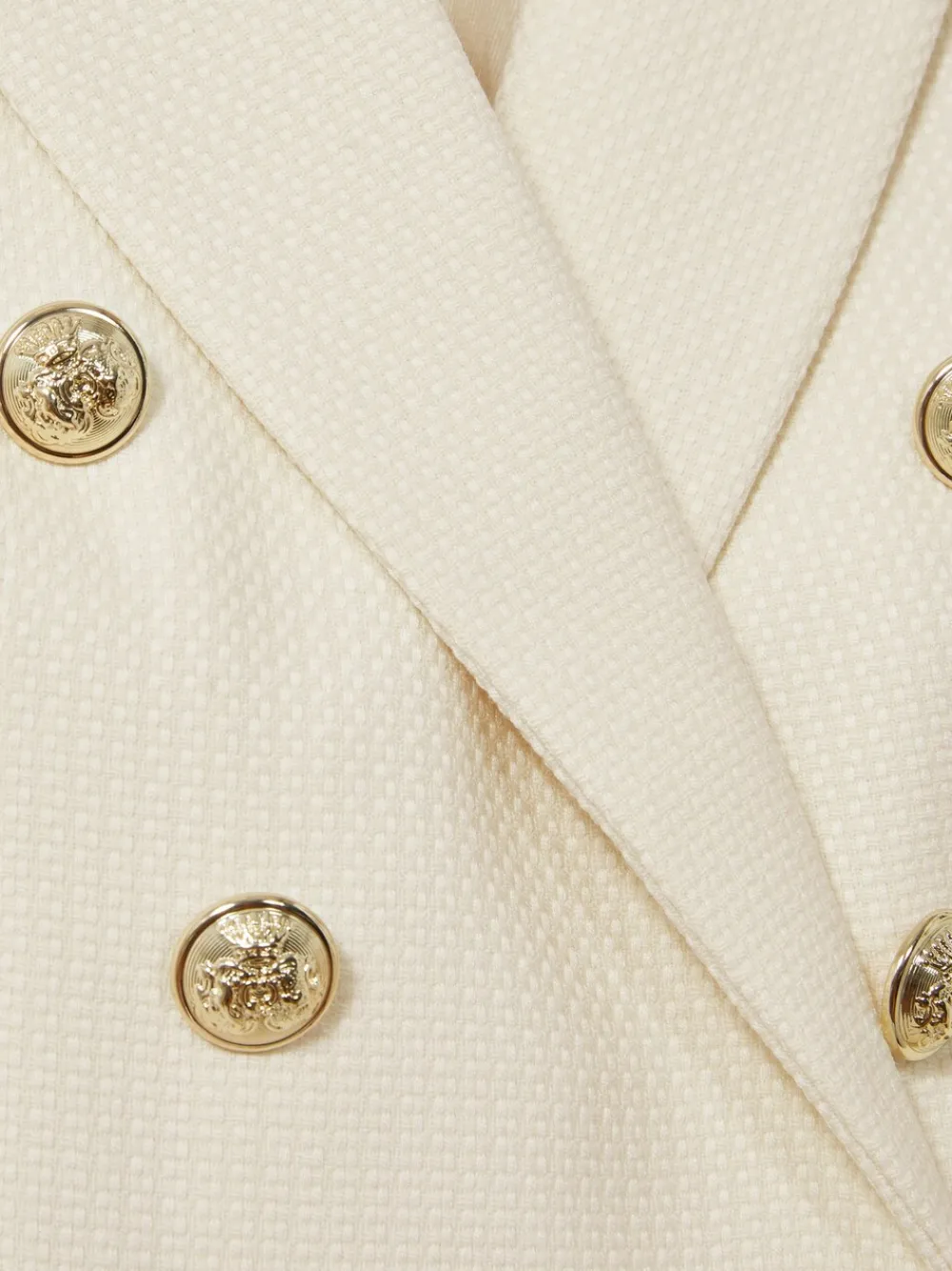 The white Tally double-breasted blazer has a tailored fit that sculpts the waist and defines the shoulders. It’s wool blend fabric has a textured hand-feel which adds interest to both casual and smart edits. Wool blend Textured Double-breasted Gold-tone buttons Vent to reverse Lined Tailored fit The model is wearing a size 8. Measurements of model: 5ft 9.5” / 176.5cm. Petite centre back neck to hem 24″ / 61cm. Dry clean only. Main 50% Wool, 50% Polyester. Lining 51% Cotton, 49% Polyester. Sleeve Lining 70% Viscose, 30% Polyester.