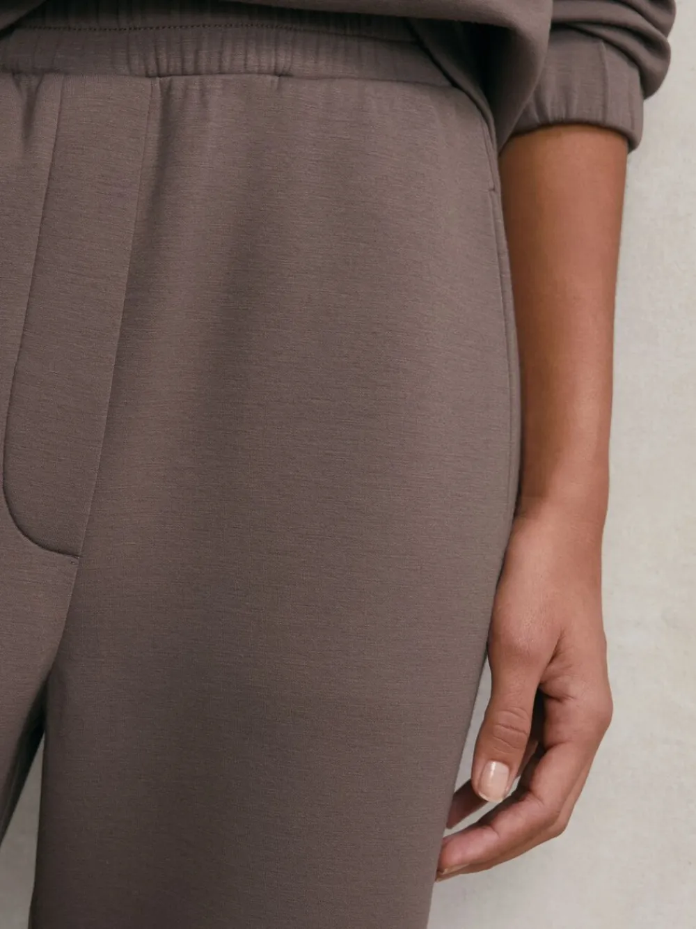The taupe brown Laney joggers are crafted from premium mid-weight interlock jersey for soft structure and fluid drape. They taper to close-fitting cuffs and have an elasticated waist. Premium mid-weight interlock jersey Tapered Elasticated waistband Side slip pockets Back welt pocket Elasticated cuffs Machine washable. Main 60% Polyester, 35% Viscose, 5% Elastane. Trim 50% Nylon, 25% Acrylic, 20% Polyester, 3% Wool, 2% Elastane.