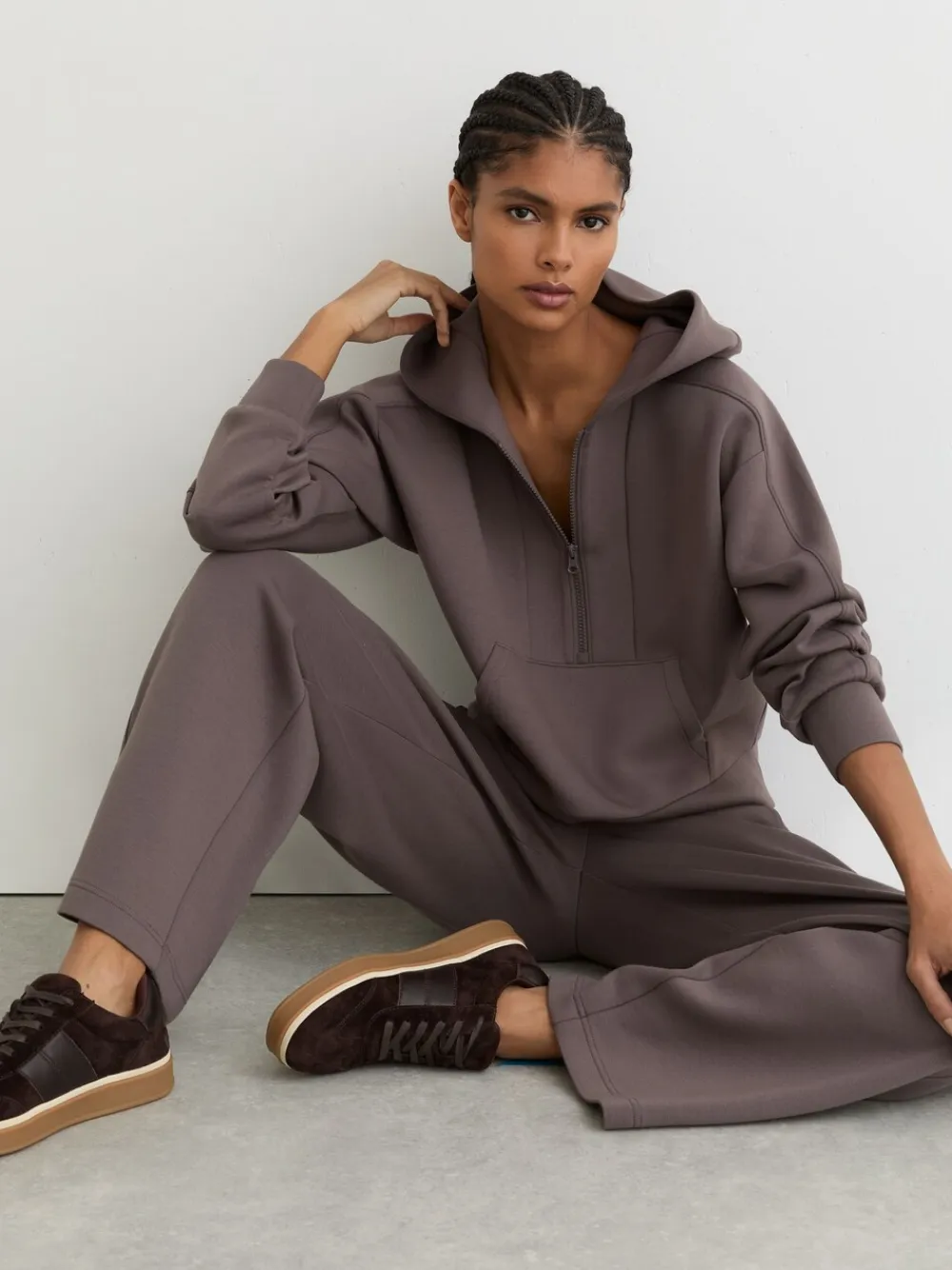 The Lockie hoodie is crafted from premium interlock jersey for a smooth, structured feel. Cut to a relaxed fit, it’s finished with seam detailing and a half-zip neckline. Premium interlock jersey Relaxed fit Seam detailing Hood Front pouch pocket Half-zip The model is wearing a size S Measurements of model: 5ft9 / 175cm Machine washable. 60% Polyester, 35% Viscose, 5% Elastane.