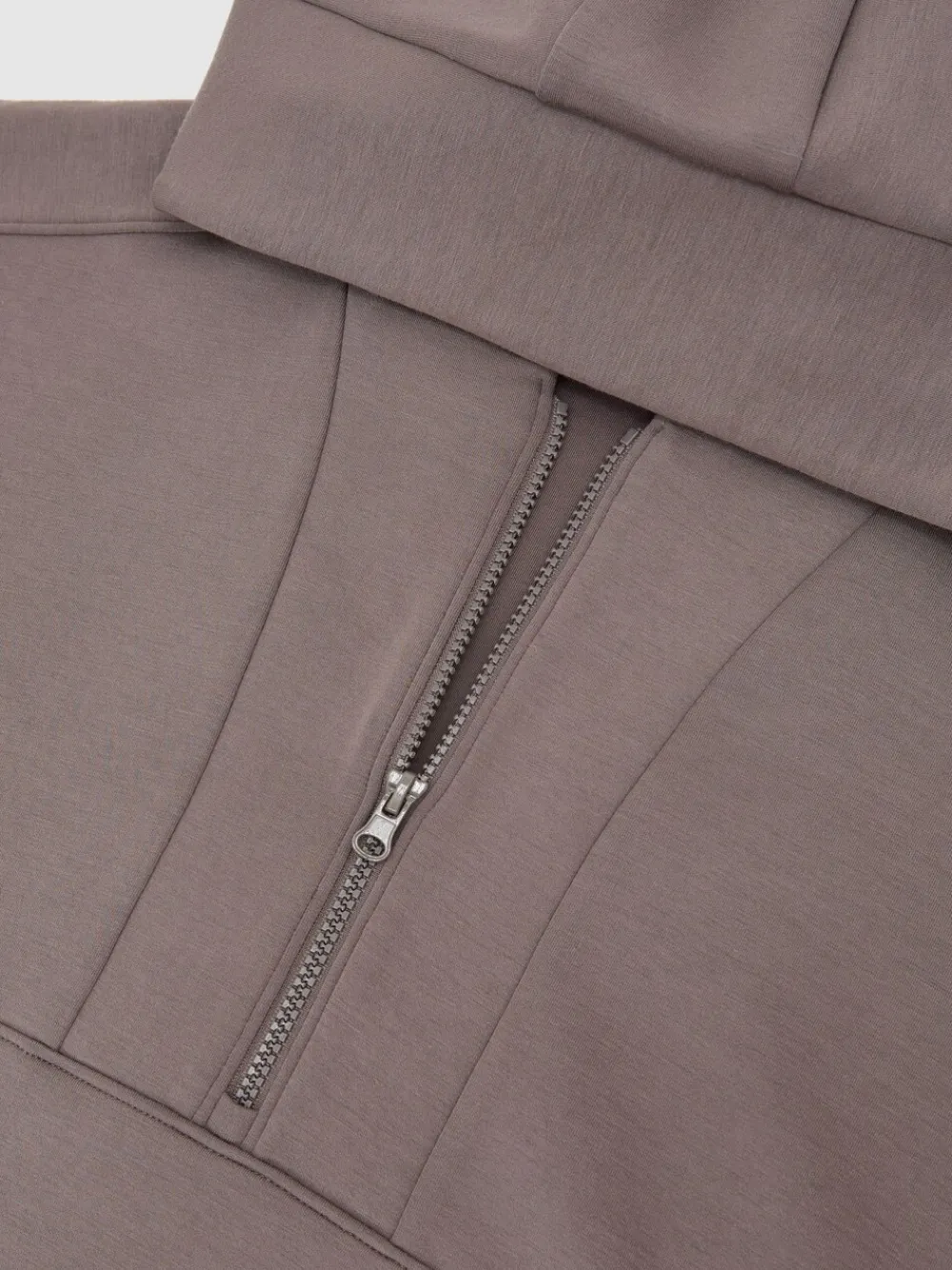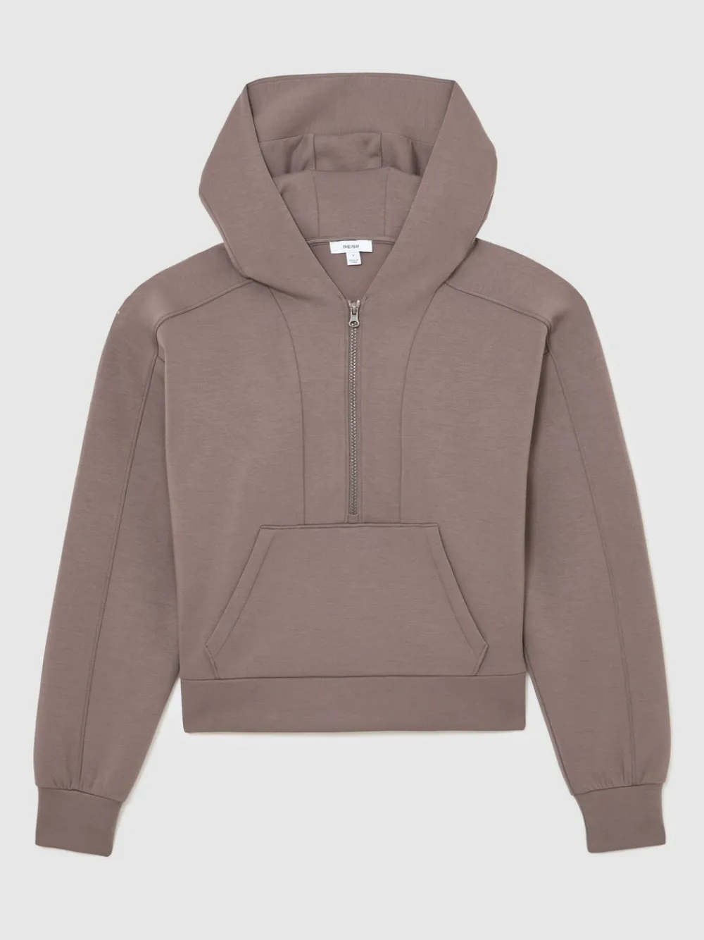 Reiss Taupe Brown Lockie Premium Interlock Half-Zip Hoodie Hot