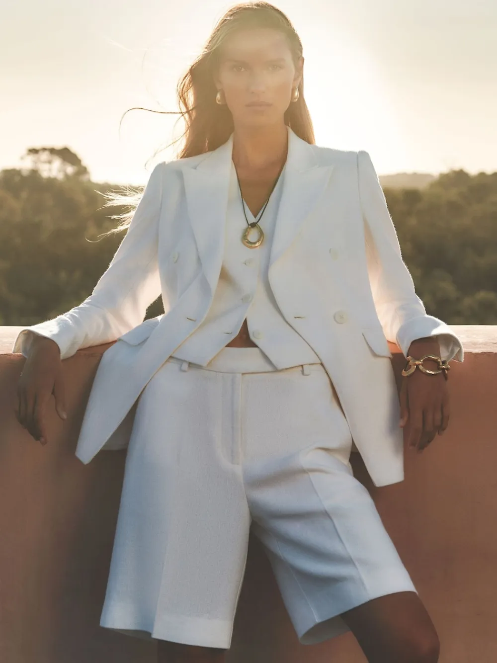 Crafted from a lightweight linen blend, the Devon Bermuda shorts are ideal for warm-weather ensembles. Pressed creases enhance their polished appeal, while a woven belt with faux-leather trim adds a refined touch. Linen blend Woven belt with faux-leather trim Pressed creases Side slip pockets Double hook-and-bar with zip The model is wearing a size 8. Measurements of model: 5ft 9.5” / 176.5cm Regular inside leg length 3″ / 8cm. Dry clean only. 55% Viscose, 45% Linen.