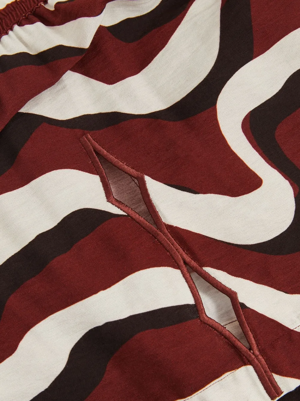 A bold wave print defines the Eva shorts, with cut-out details at the sides framed by delicate embroidery. The drawstring waistband ensures a comfortable fit, perfect for beach days or laid-back summer outings. Pair with the matching Eva shirt for a coordinated look. Wave print Cut-out details Elasticated drawstring waistband The model is wearing a size 8. Measurements of model: 5ft 9.5” / 176.5cm. Regular inside leg length 2″ / 5cm. Machine washable. 90% Viscose, 10% Nylon.