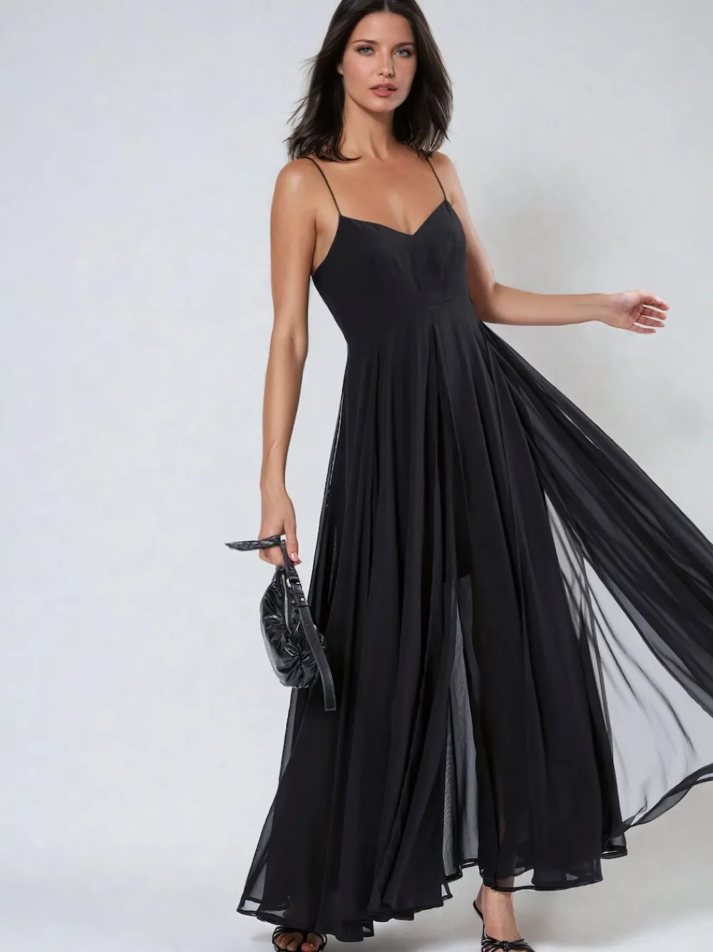 The infamous Olsen Black Maxi Dress is an iconic shape for the brand. This season we introduce it in a selection of abstract, animal and floral prints – hand painted in house. The maxi dress is made from layers and layers of semi-sheer chiffon fabric with a small empire line top and a body lined under skirt. The dress has a lined chiffon top with a low V-Neck shape and spaghetti straps for a super feminine touch. The maxi skirt with gathered pleats and high splits, which is made from 10m of floaty georgette fabric. The skirt has a lot of volume and can be taken up by a tailor if it’s too long for some. The straps are not adjustable but again can be made shorter or longer depending on your bust size. The model wears a size S equivalent to a UK size 10 and fits true to size as the bust must remain more fitted while the skirt part is loose. Main 100% Polyester. Lining 100% Viscose.