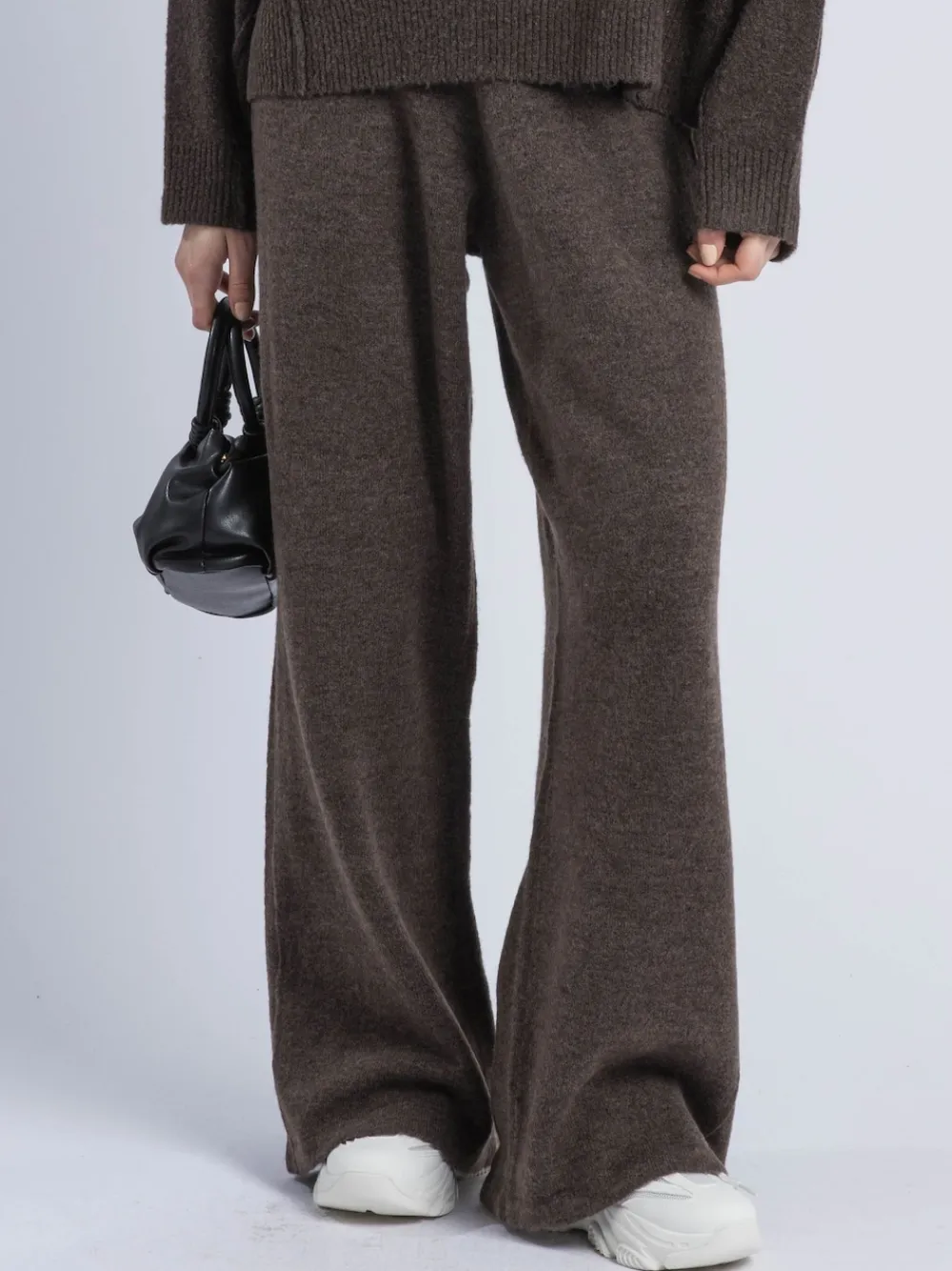 Our Luscious Trousers are our wide-leg trousers setting the trend for quiet luxury and are crafted from a blend of soft wool yarn, offering both comfort and style. The back pocket features our skull and cross bones jacquard, offering a bit of cool. Designed with an elasticated waistband for an easy fit, these trousers feature convenient back pockets. Pair them with the matching Luscious jumper for a coordinated and chic ensemble. Perfect for a casual yet stylish off duty look or layer with a sharp jacket for the perfect travelling outfit. The model wears a size 10. Inseam length: 77 cm. Machine washable. 50% Acrylic, 25% Nylon, 20% Viscose, 5% Wool.