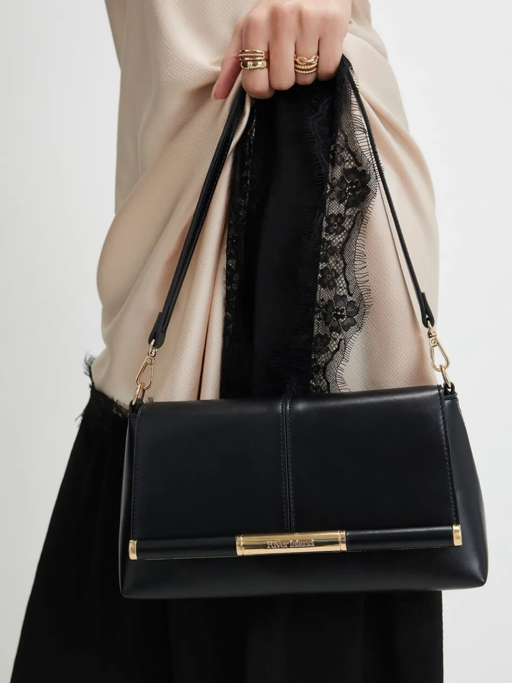 River Island Black Bar Front Clutch Bag Hot