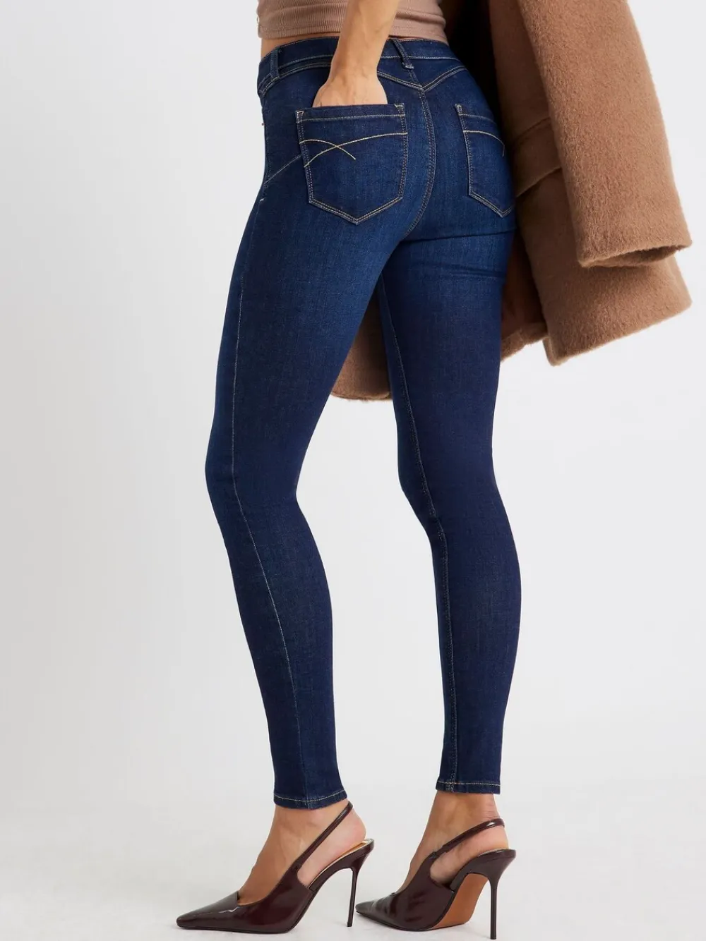Denim fabricMid riseSkinny fitBelt loopsPocketsZip and button fastening Machine washable. 80% Cotton, 18% Polyester, 2% Elastane.
