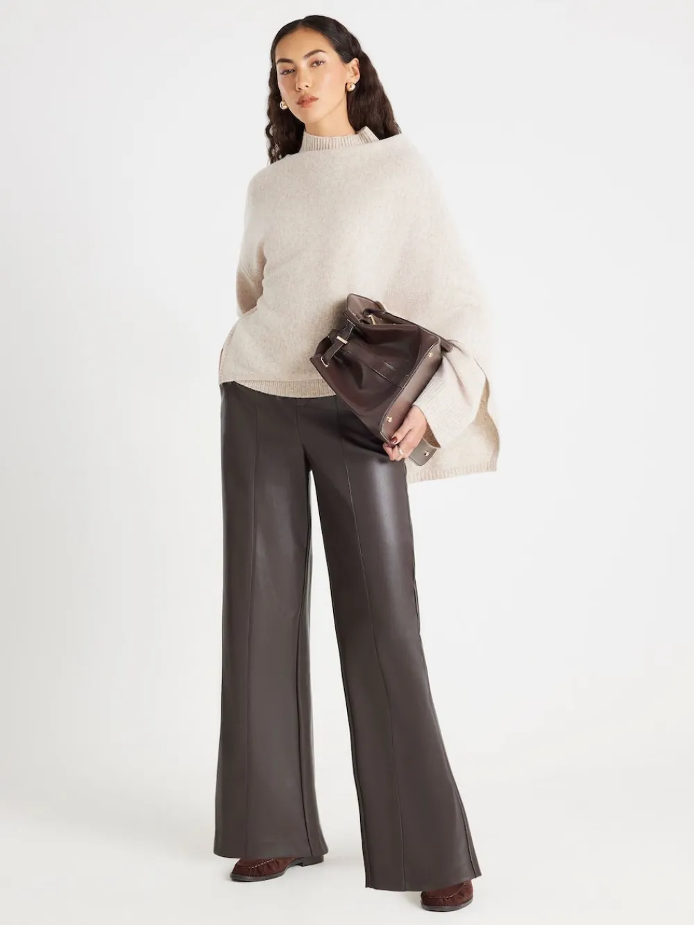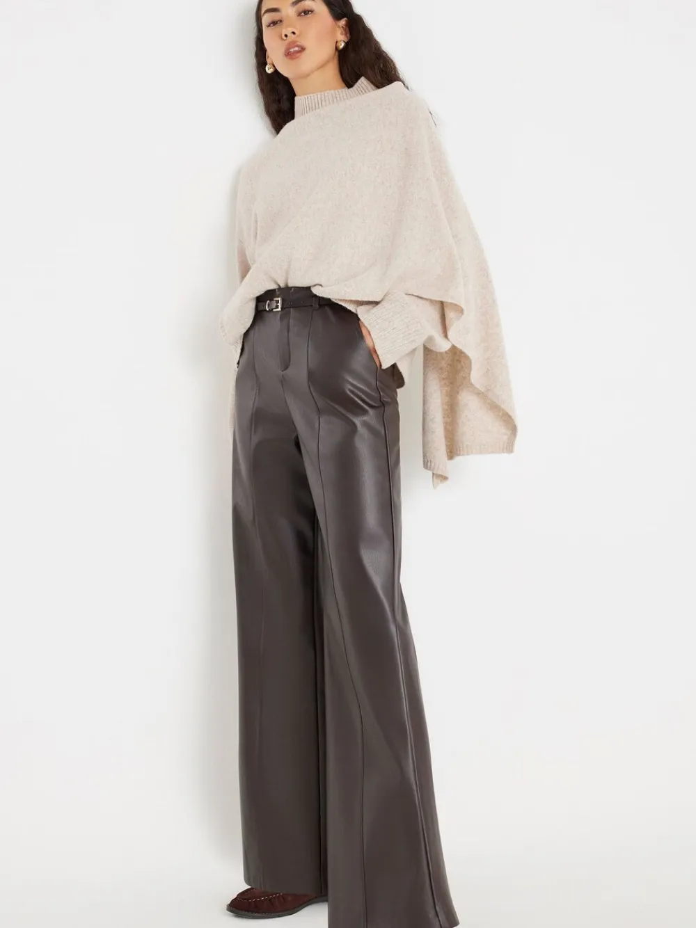 River Island Brown Faux Leather Wide Leg Trousers Outlet