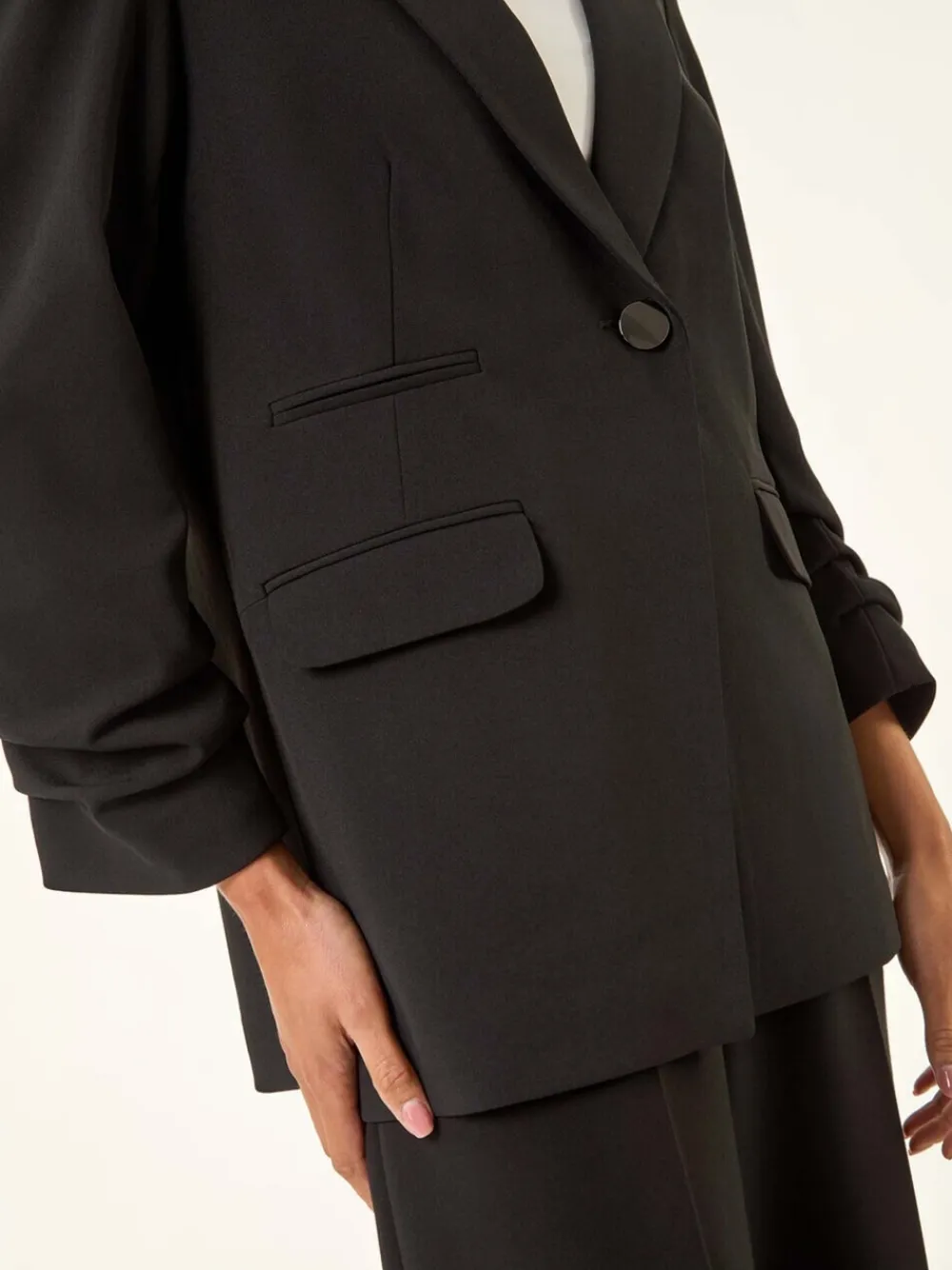 Be the first to review “Roman Petite Ruched Buttoned Blazer Black Best” Cancel reply