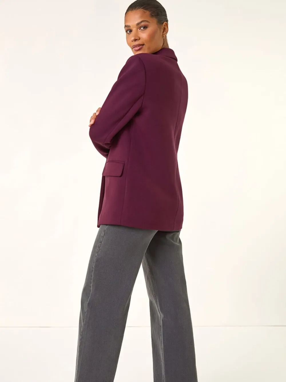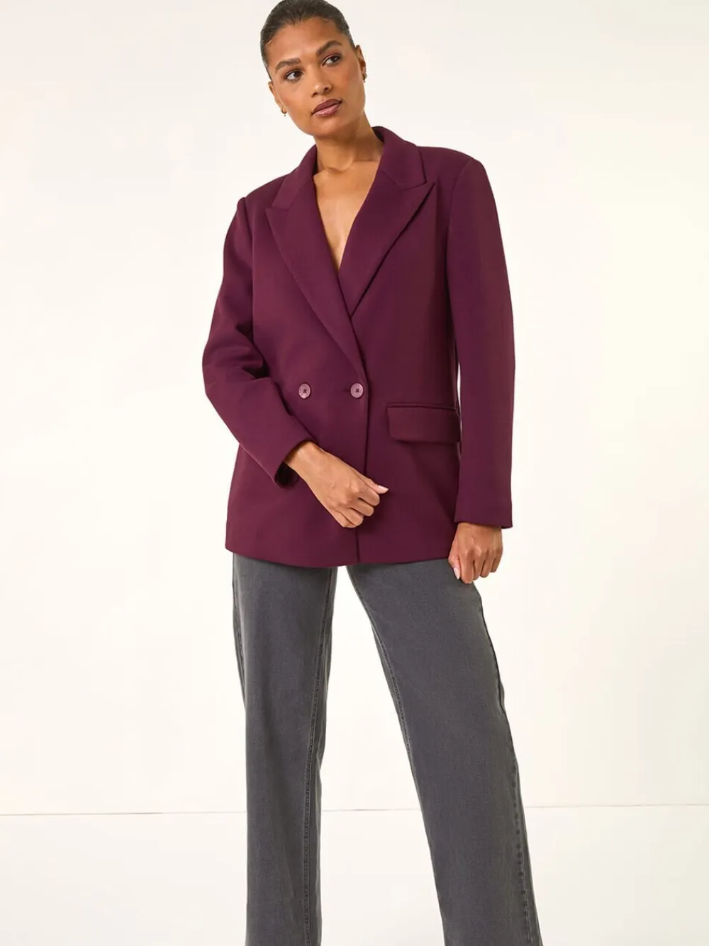 Elevate your Autumn/Winter wardrobe with this premium stretch ponte double breasted blazer. Crafted from a luxurious fabric, this blazer features a sophisticated double-breasted design that adds a touch of elegance to any outfit. The stretch ponte fabric ensures a comfortable fit, while the structured silhouette exudes a smart and tailored look. Pair it with a sleek dress and heels for a chic ensemble that’s perfect for any formal occasion. Machine washable. 81% Polyester, 15% Viscose, 4% Elastane.