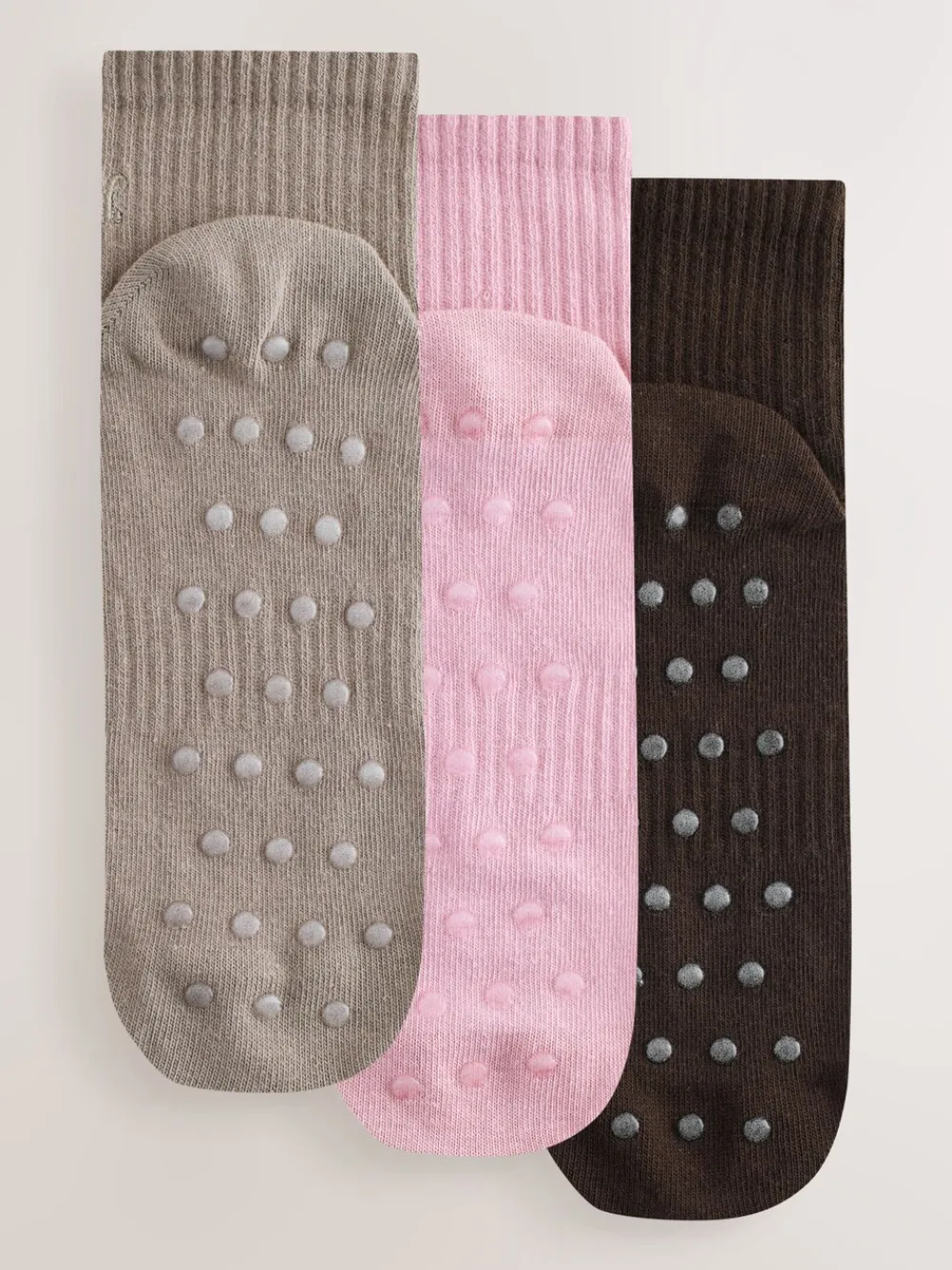 self. Cropped Ankle Embroidered Logo Gripper Socks 3 Pack Black/Pink/Mocha Brown Discount
