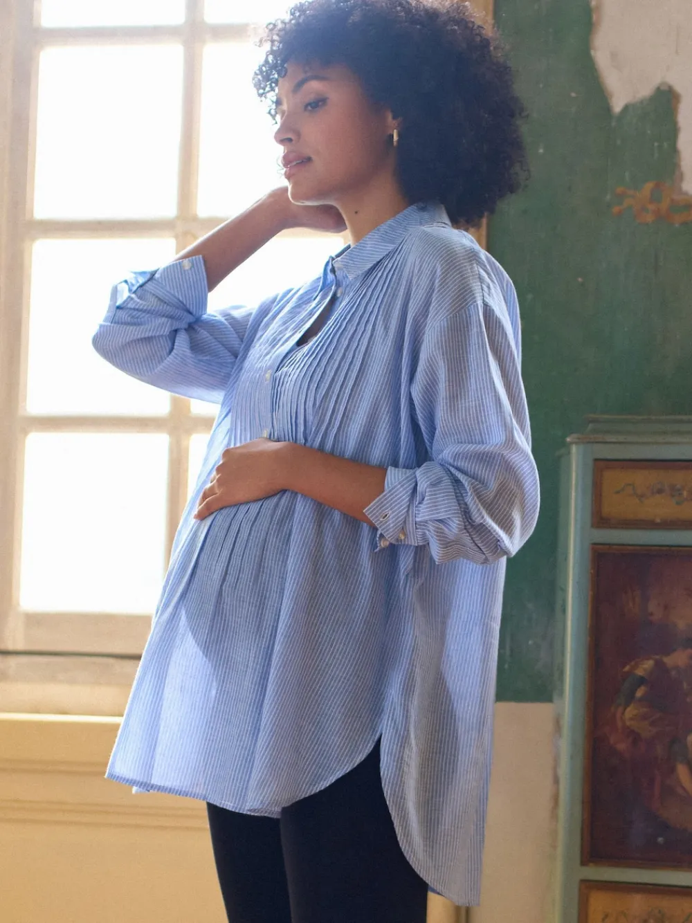 Be the first to review “Seraphine Blue & White Stripe Maternity Pintuck Shirt Clearance” Cancel reply