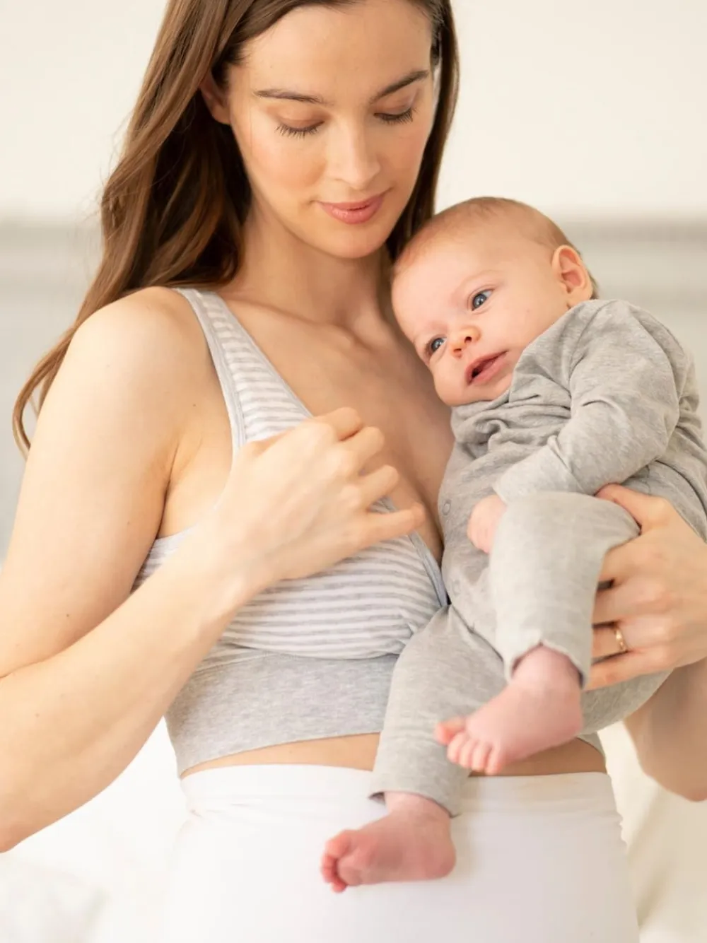 Seraphine Grey Stripe & White Maternity & Nursing Seamless Sleep Bras 2 Pack Grey Stripe & White Best