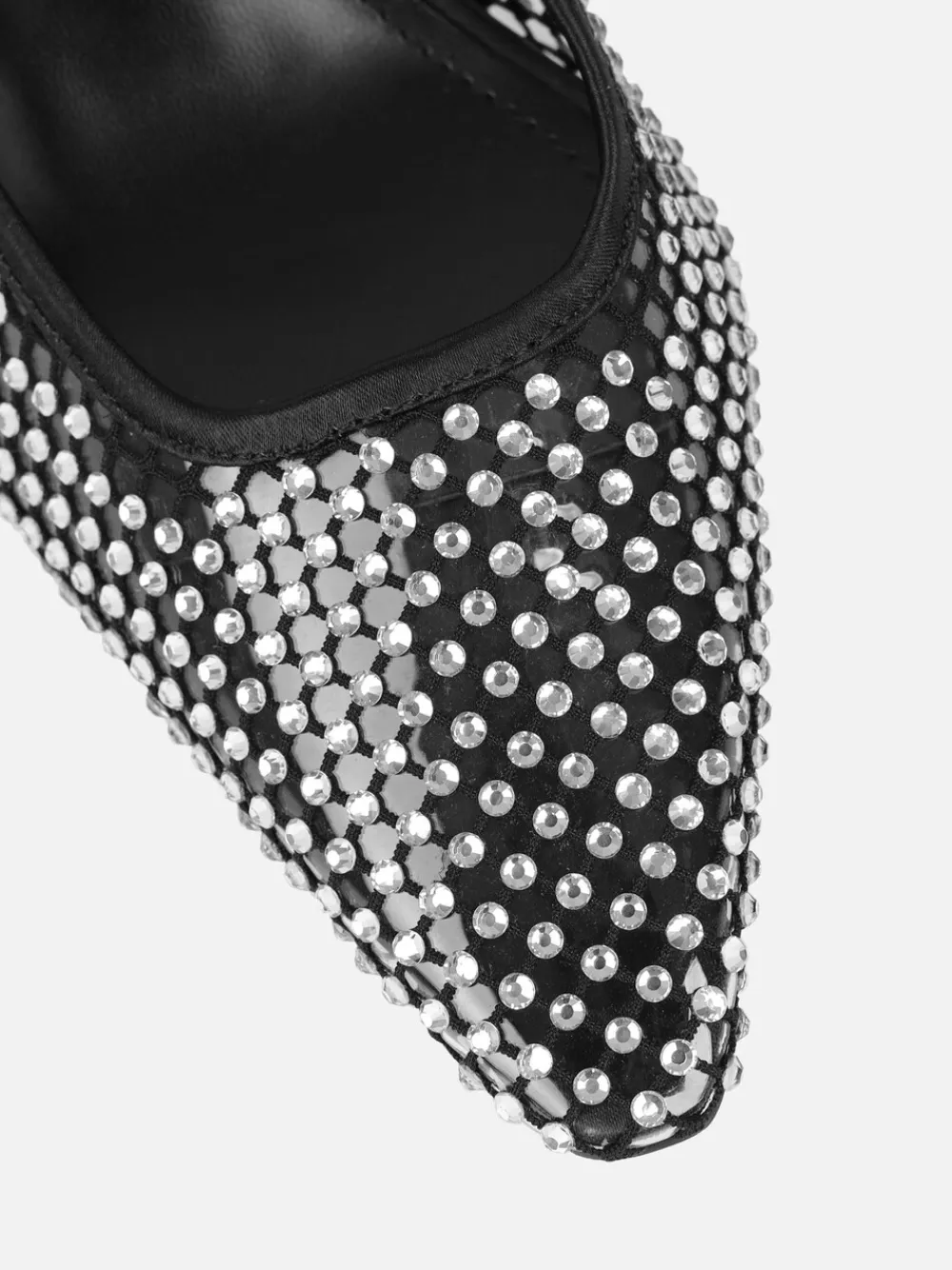 Crafted from sparkling diamante mesh, these courts make an unforgettable statement. Featuring a squoval pointed toe, classic stiletto heel, and elegant slingback, they’re designed to sparkle under the lights. Heel height 10cm. Main – 100% Other fibres. Lining – 100% Other fibres. Sock – 100% Other fibres.