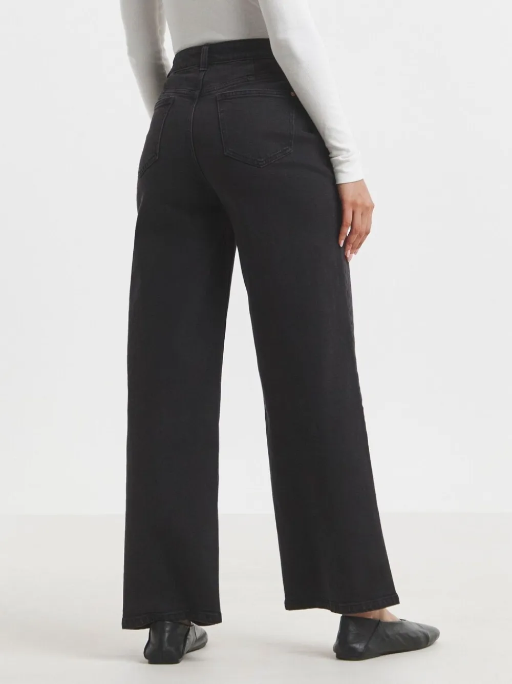 Our new 99/1 Slouchy Wide Legs are the ultimate wardrobe staple! They feature: Front and back pockets, belt loops, a flattering slouchy shape, an elasticated waist for extra comfort, and a black wash. Pair with trainers and a tee for a daytime look. Machine washable. 99% Cotton, 1% Elastane.