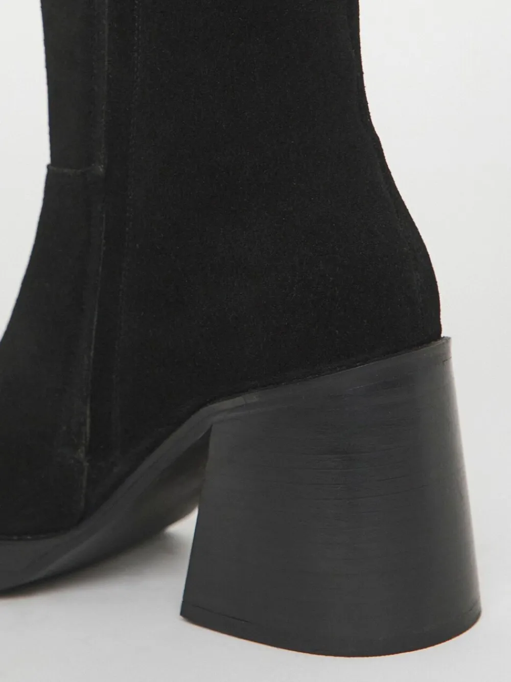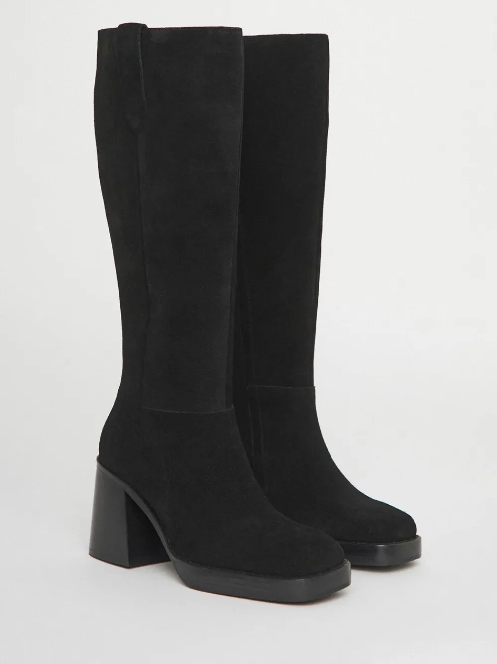 Our best-selling knee-high boots are back and better than ever. Block heel, square toe outsole. Genuine suede upper, Pull tab, and inside leg zip for ease. Cushioned sock for lasting comfort. Main – 100% Leather, Lining. and Sock – 100% Leather. Sole – 100% Rubber.