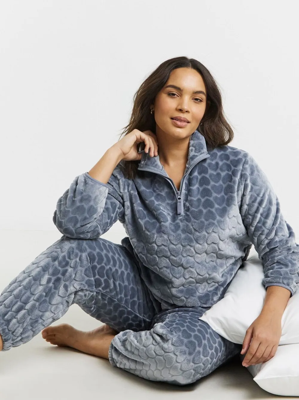 Be the first to review “Simply Be Blue Pretty Secrets Heart Print Quarter Zip Fleece Twosie Pyjama Set Sale” Cancel reply