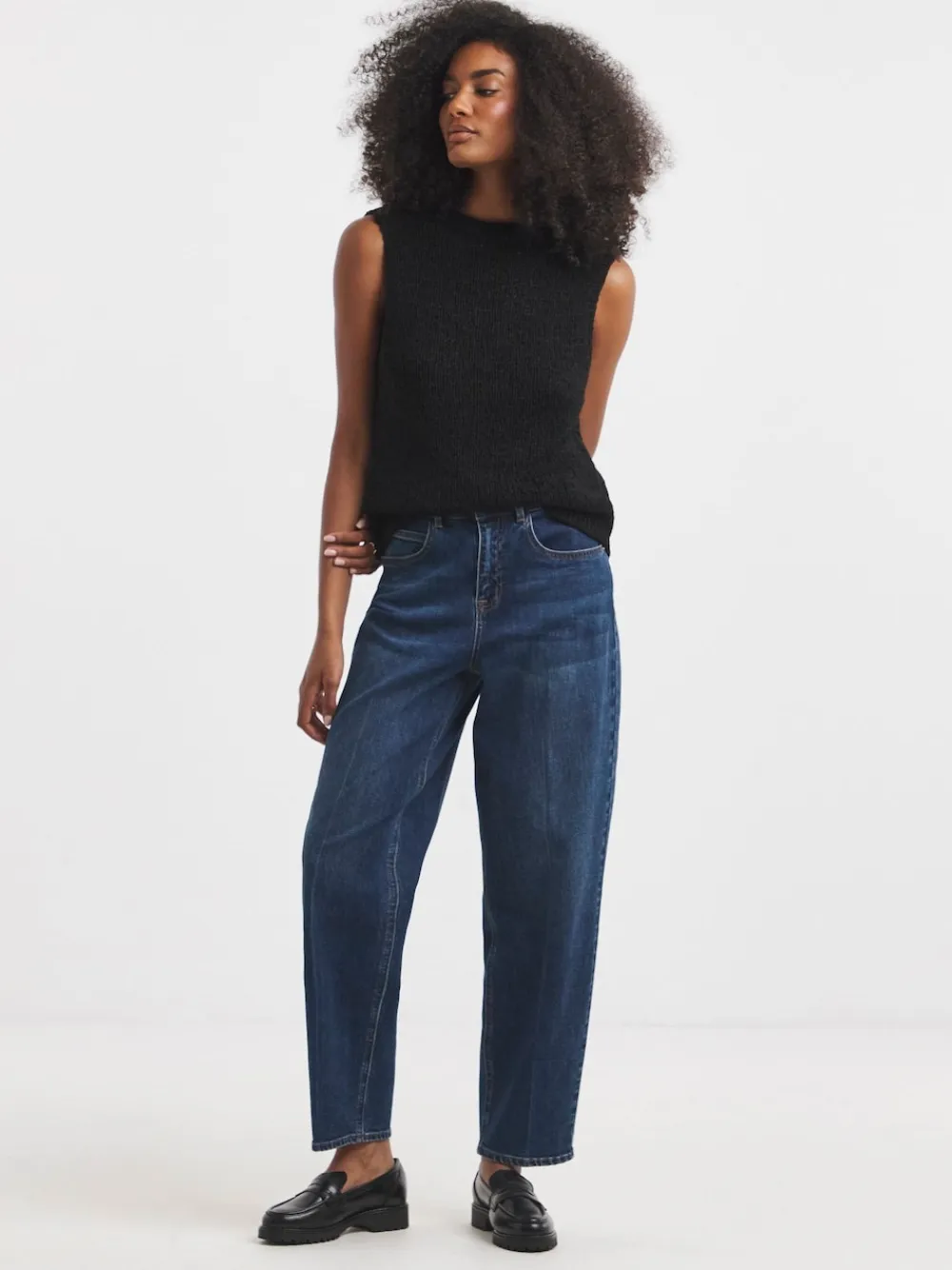 Elevate your jeans collection this season with our new Smart Tapered Barrels! They feature: front and back pockets, belt loops, a trendy barrel shape, silver hardware, an elastane blend for extra comfort, and a classic mid blue wash. Dress up or down for any daytime occasion. Machine washable. 91% Cotton, 8% Polyester, 1% Elastane.