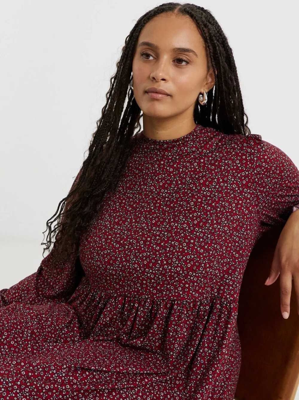 A great addition to your wardrobe this season. Shop this stylish dress featuring: midi length, our bestselling supersoft fabric, and ditsy floral print. Simply pair with trainers for an effortless everyday look. Machine washable. 95% Polyester, 5% Elastane.