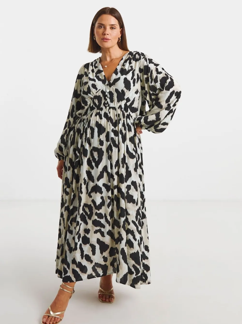 Simply Be V-Neck Button Through Midi Dress Animal