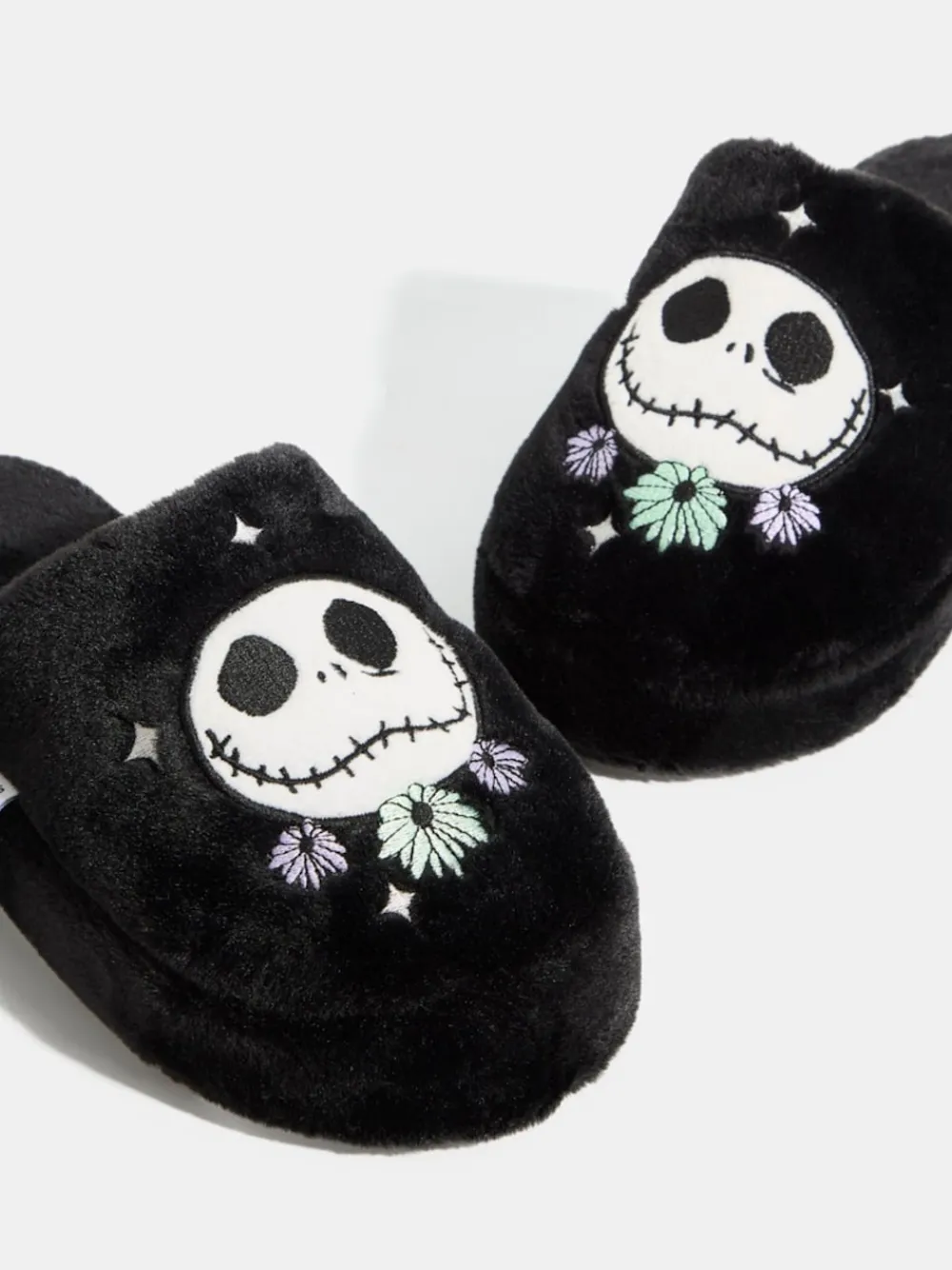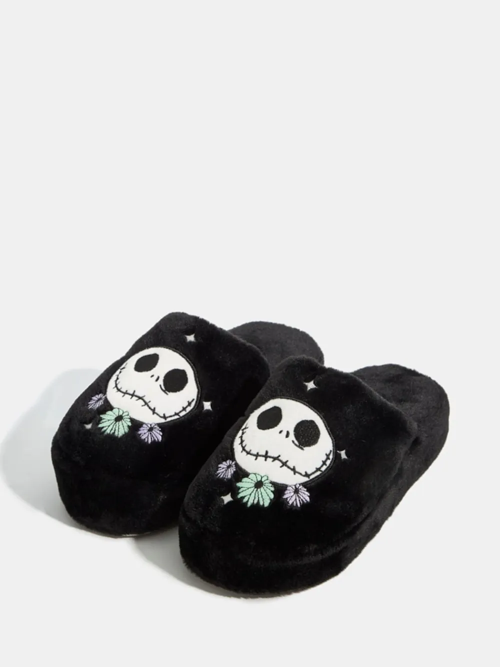 Step into a world of spooky charm with the Disney Nightmare Before Christmas Slippers from Skinnydip. Featuring iconic characters from Tim Burton’s beloved film Upper – 100% Polyester, Lining. and Sock – 100% Polyester. Sole – 100% Rubber.