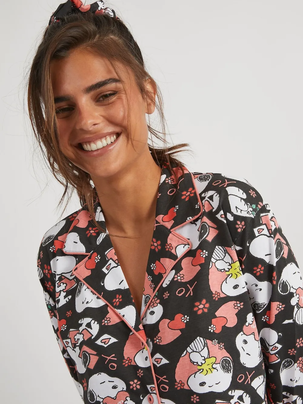 Snuggle up with Snoopy and all the love in the air! The Peanuts x Skinnydip Snoopy Love Pyjama Set is your ultimate cozy companion for those chill nights and lazy mornings. Machine washable. 100% Cotton.