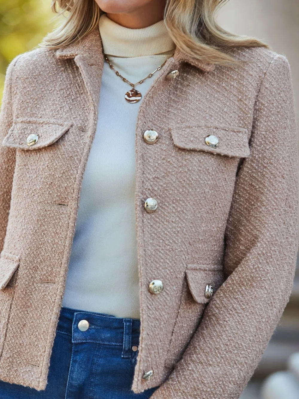 Be the first to review “Sosandar Natural Boucle Jacket With Gold Buttons Online” Cancel reply
