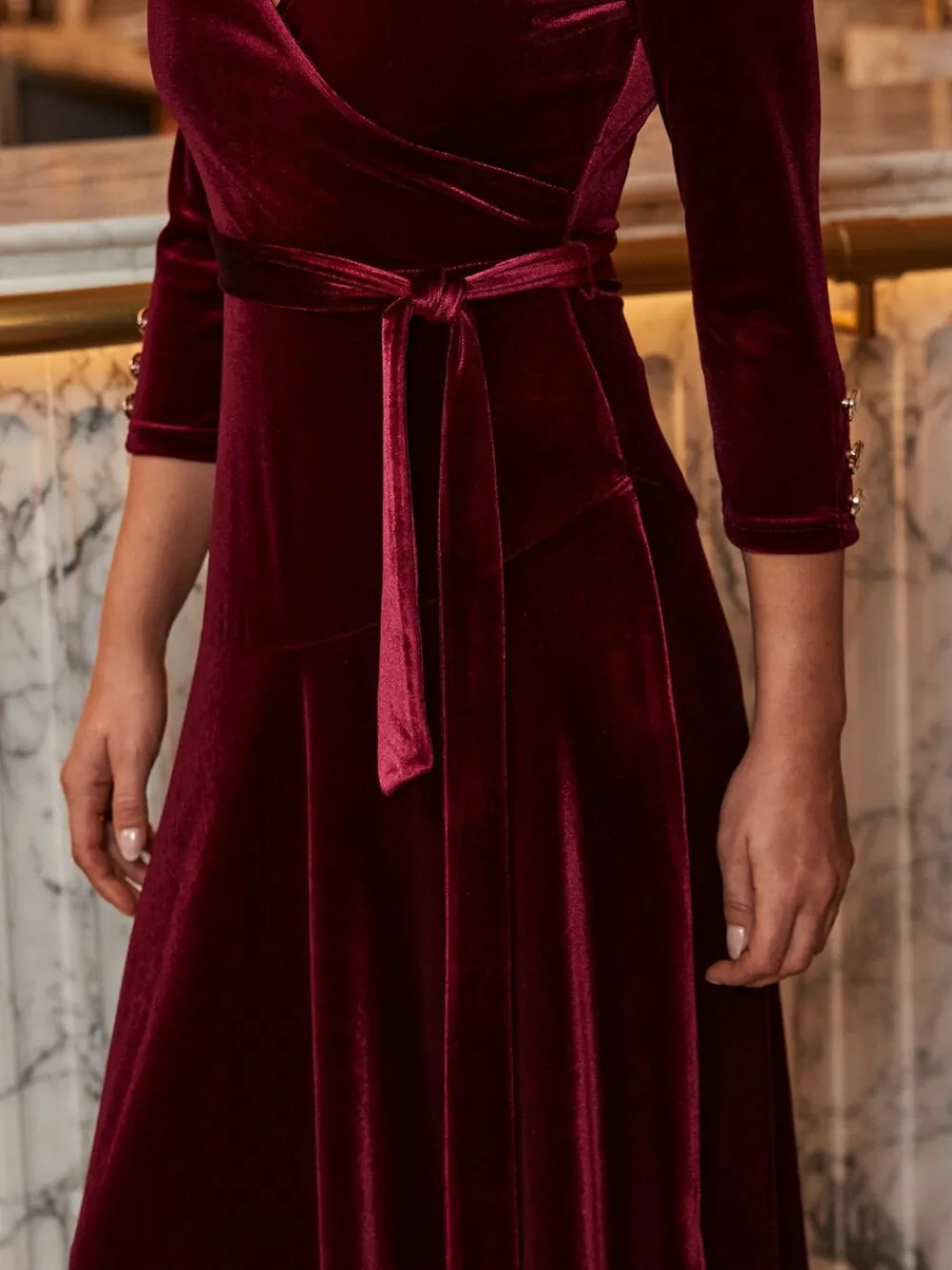 Sosandar Red Velvet Belted Fit & Flare Wrap Dress Discount