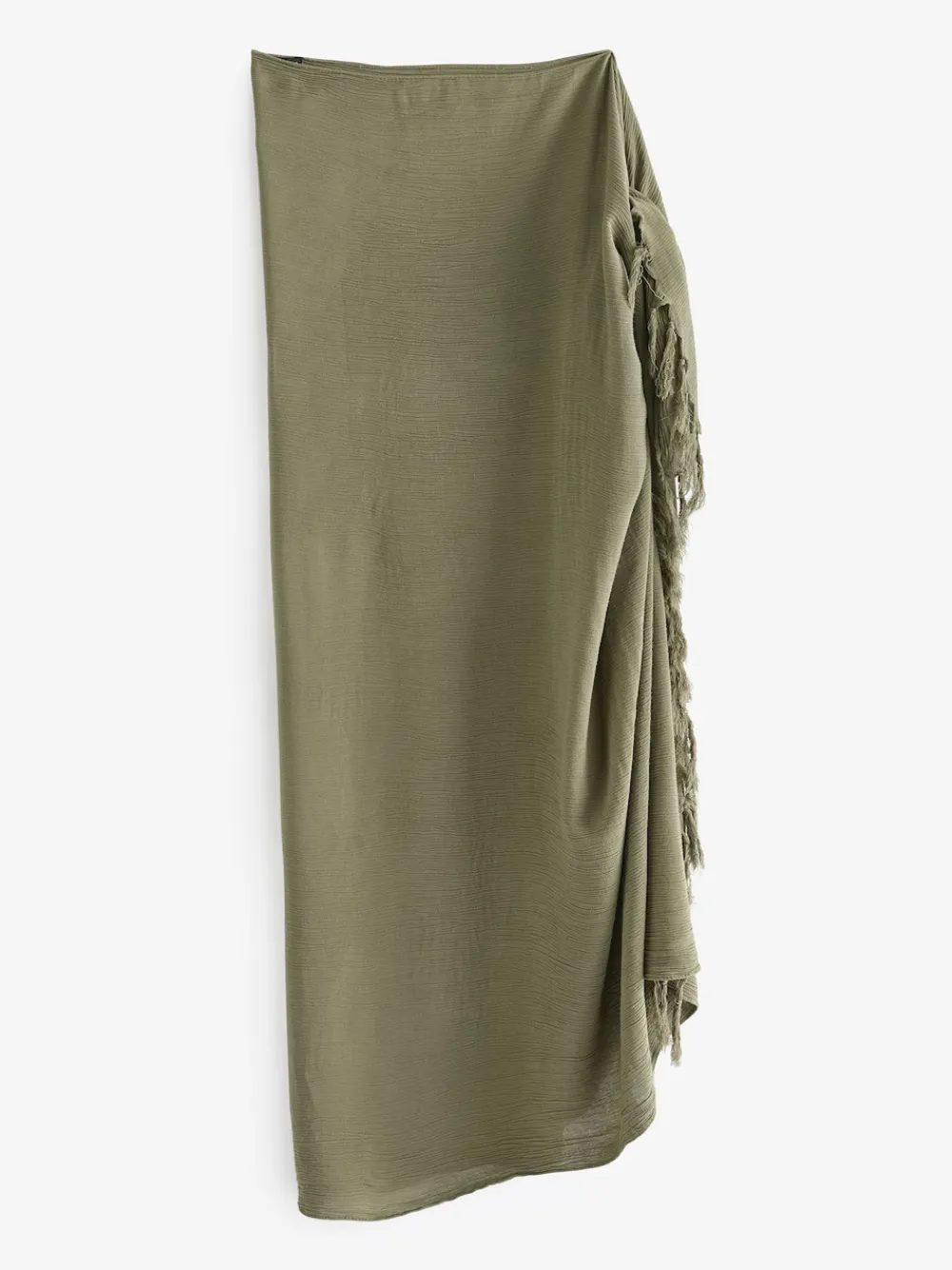 South Beach Khaki Crinkle Viscose Fringed Sarong Cover-Up Sale