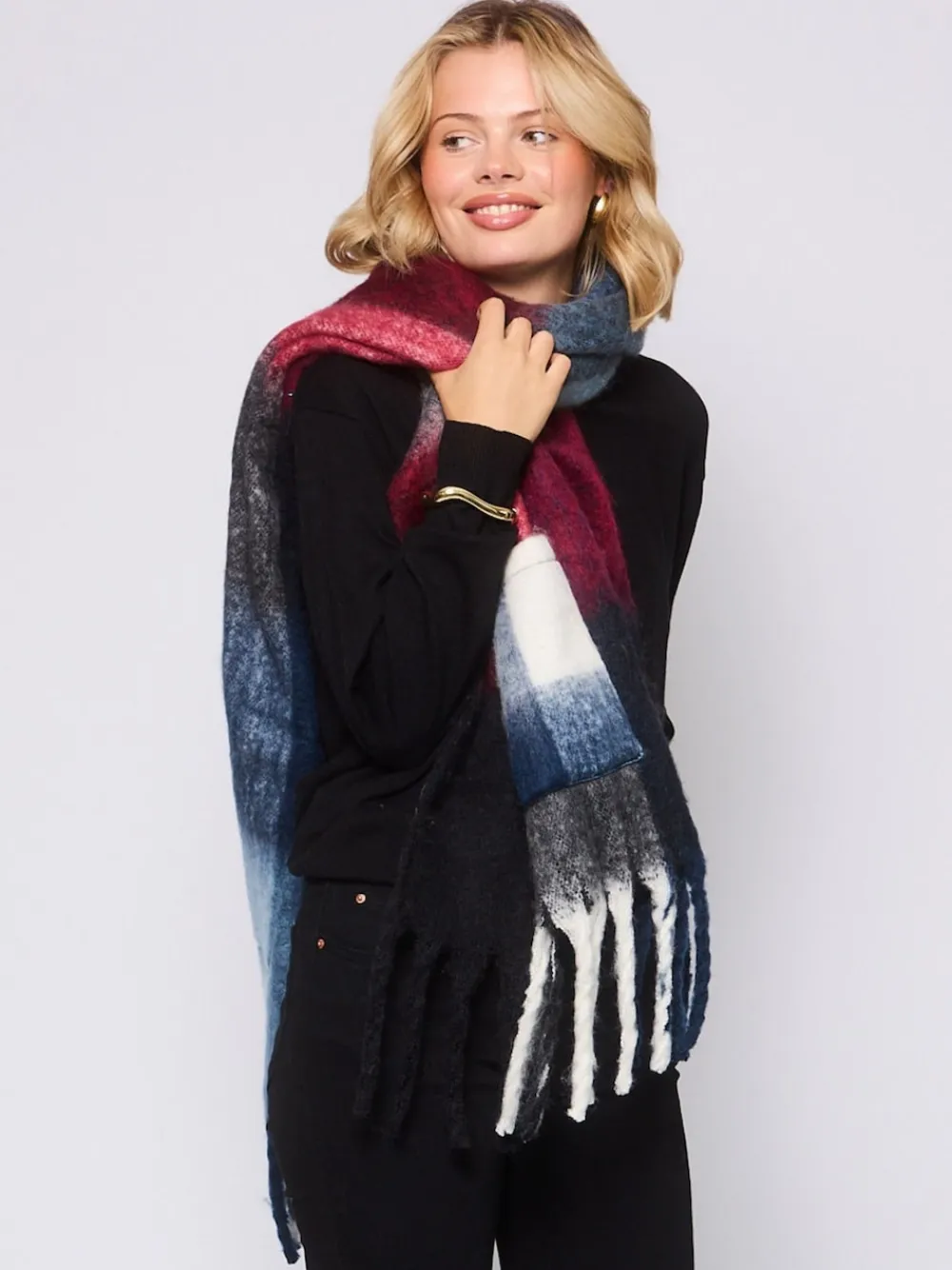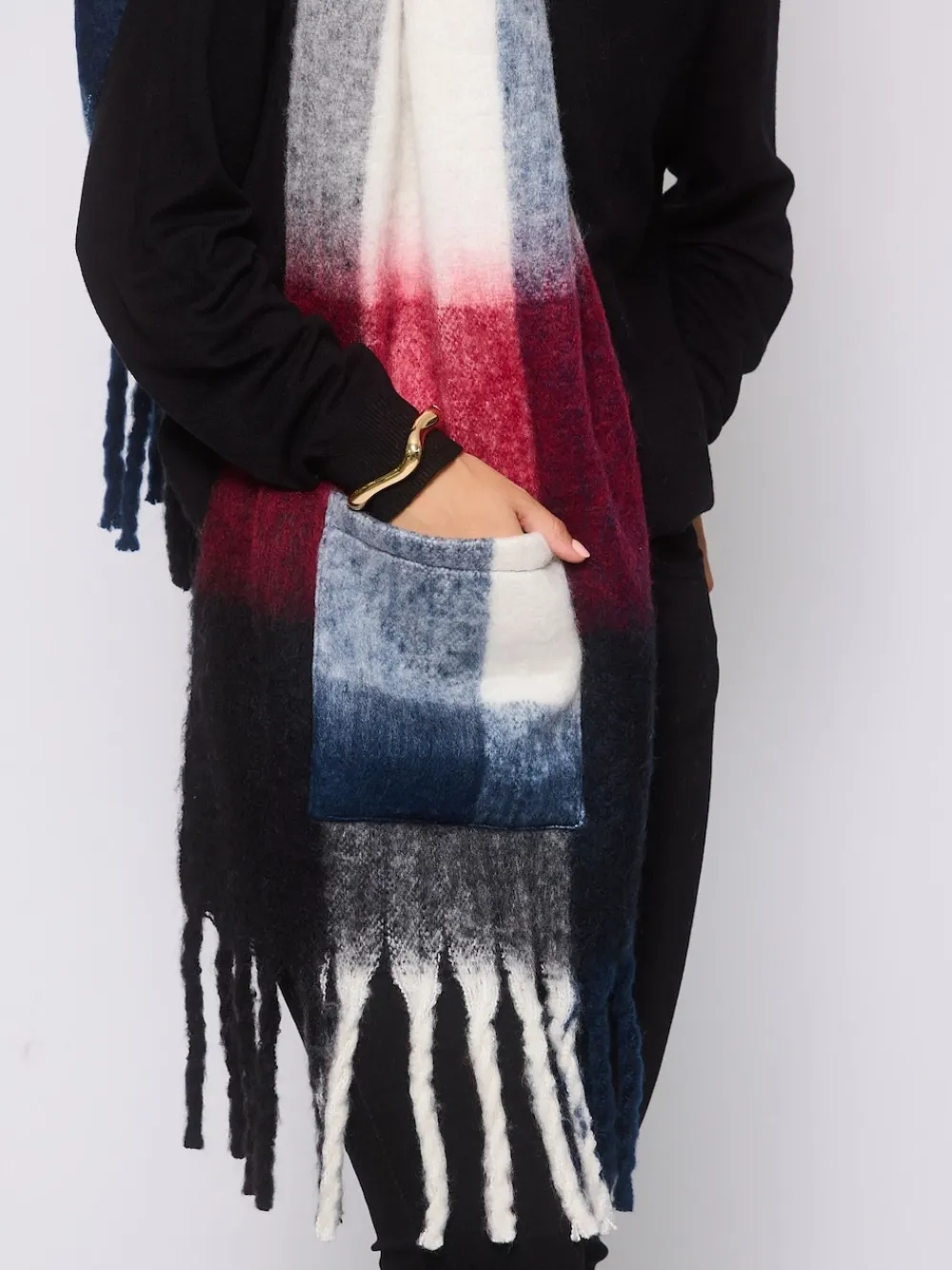South Beach Red Fluffy Check Scarf with Pocket Clearance