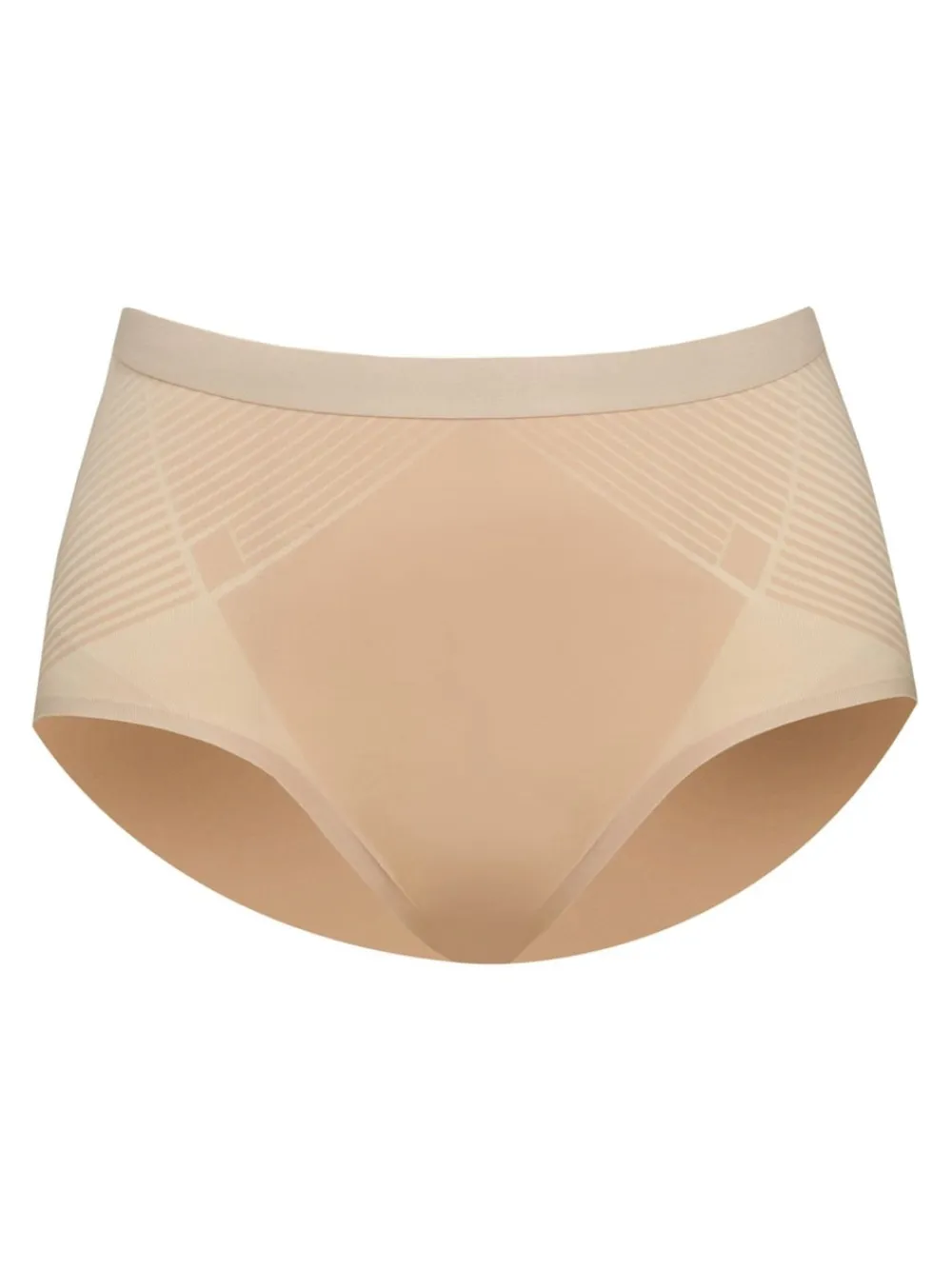 Experience lightweight and powerful compression with our SPANXshape™ Invisible Brief. Featuring advanced single-layer Printed Power® shaping technology made with LYCRA® FitSense™ Print Technology it includes targeted tummy control panels that wrap around for 360-degree shaping. Designed with ultra-thin, breathable fabric that is moisture-wicking and quick-drying, a cotton gusset for comfort, a no-slip silicone waistband that prevents rolling, and no-dig flexible leg openings, this sleek shapewear design goes undetected under any outfit. Main 55% Nylon, 45% Lycra® Elastane. Gusset 100% Cotton.