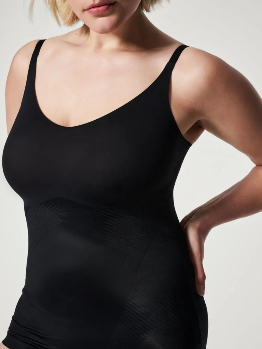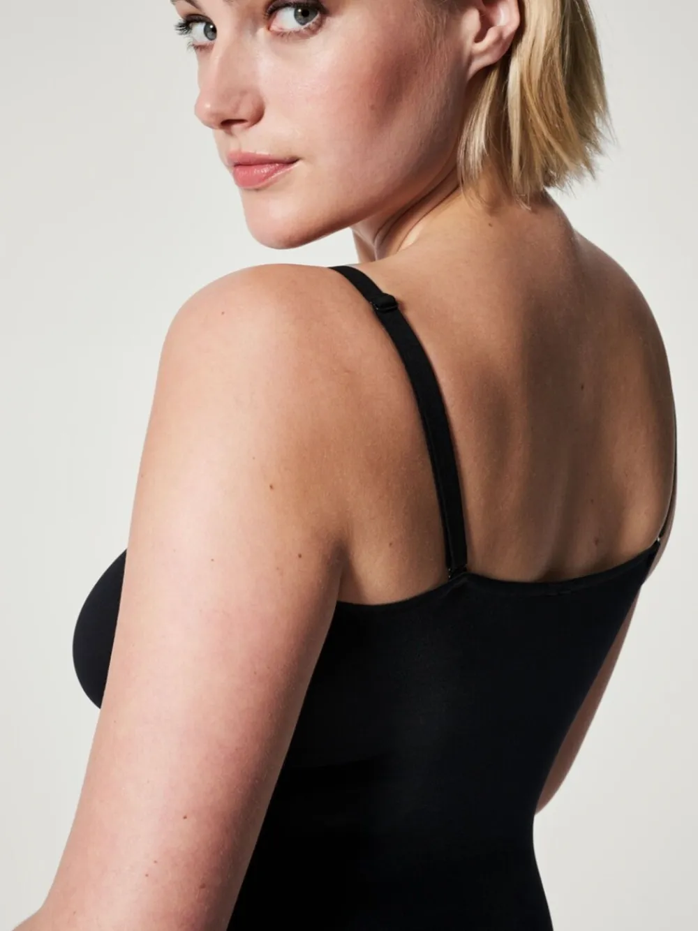 Experience lightweight and powerful compression with our SPANXshape™ Invisible Cami. Featuring advanced single-layer Printed Power® shaping technology made with LYCRA® FitSense™ Print Technology, this tank top includes targeted tummy control panels that wrap around for 360-degree shaping. Designed with ultra-thin, breathable fabric that is moisture-wicking and quick-drying, adjustable straps for a custom fit, and a fit-flexible hem that stays in place, this shapewear goes undetected under any outfit. 64% Polyester, 24% Elastane, 12% Cotton.