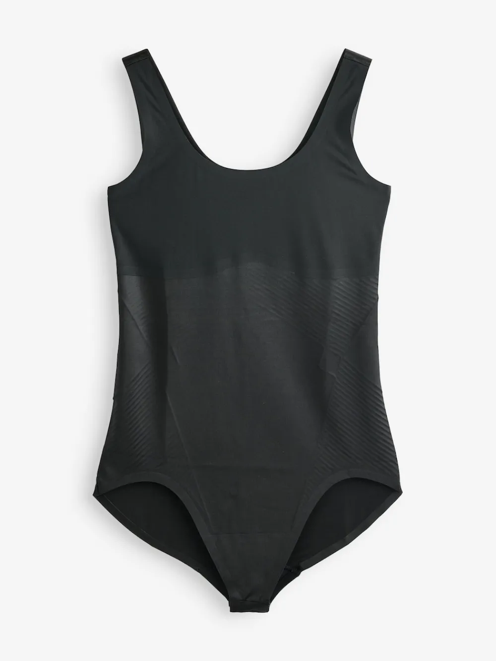 Experience lightweight and powerful compression with our SPANXshape™ Invisible Tank Brief Bodysuit. Featuring advanced single-layer Printed Power® shaping technology made with LYCRA® FitSense™ Print Technology, this bodysuit includes targeted tummy control panels that wrap around for 360-degree shaping. Designed with ultra-thin, breathable fabric that is moisture-wicking and quick-drying, adjustable straps that eliminates rolling, and no-dig flexible leg openings, this shapewear goes undetected under any outfit. Body 55% Nylon, 45% Elastane. Lining 77% Nylon, 23% Elastane. Gusset 100% Cotton.