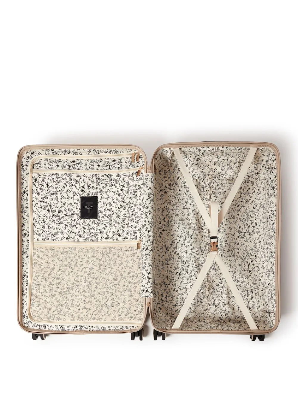 Inspired by Ted Baker’s Icon Bag, Icon Case brings statement design to every journey. With a croc embossed finish, bold branding, and a refined silhouette, Icon Case is designed for the traveller looking to stand out. This beautifully coordinated 4-piece collection includes a Vanity Case, Cabin, Medium, and Large suitcase. Details include a signature print lining with an organised interior to make packing easy, an embedded TSA lock, and double wheels with branded wheel caps. Height 79cm Width 52cm Depth 33cm 100% ABS (Acrylonitrile Butadiene Styrene).