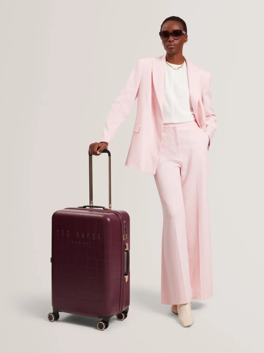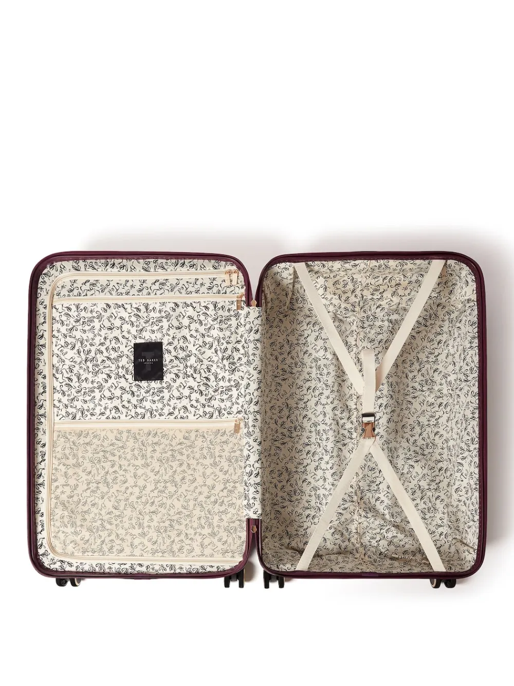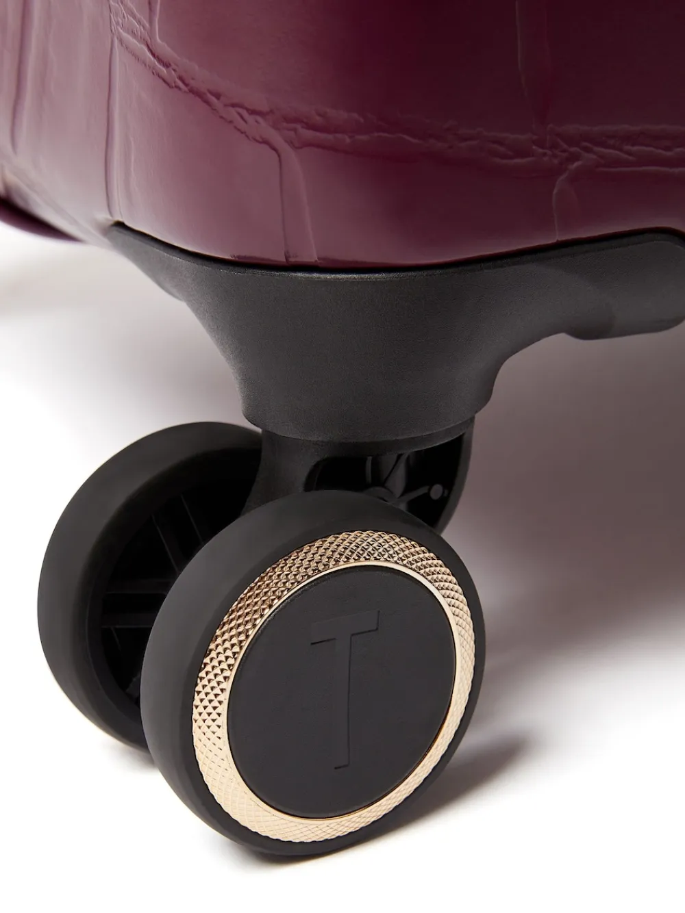 Inspired by Ted Baker’s Icon Bag, Icon Case brings statement design to every journey. With a croc embossed finish, bold branding, and a refined silhouette, Icon Case is designed for the traveller looking to stand out. This beautifully coordinated 4-piece collection includes a Vanity Case, Cabin, Medium, and Large suitcase. Details include a signature print lining with an organised interior to make packing easy, an embedded TSA lock, and double wheels with branded wheel caps. Height 68cm Width 45cm Depth 28cm 100% ABS (Acrylonitrile Butadiene Styrene).