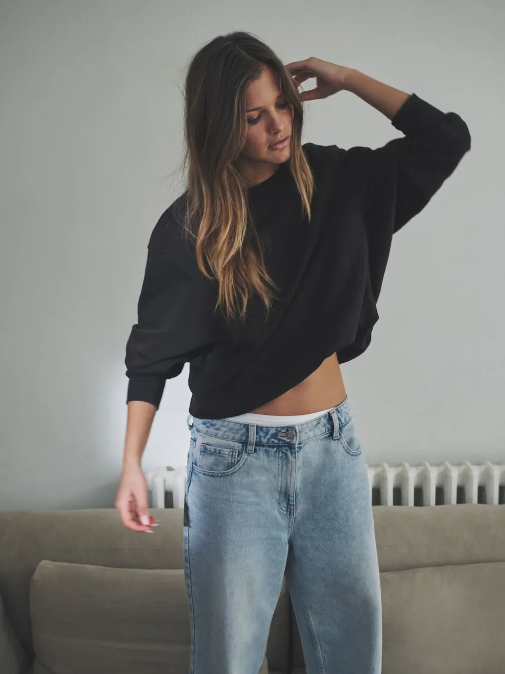 Get a stylish, relaxed silhouette with THE SET 2 Pack Bubble Hem Sweatshirts. This multipack includes two essential colours: a classic stone and a deep chocolate brown. Each sweatshirt is made from a comfortable cotton rich fabric and features a classic crew neck and long sleeves. The design detail is the relaxed volume of the sleeves and the neat bubble hem, which cinches slightly at the waist for a flattering, modern shape. 2 pack Bubble hem Crew neck 2 x Sweater 60% Cotton, 40% Polyester.