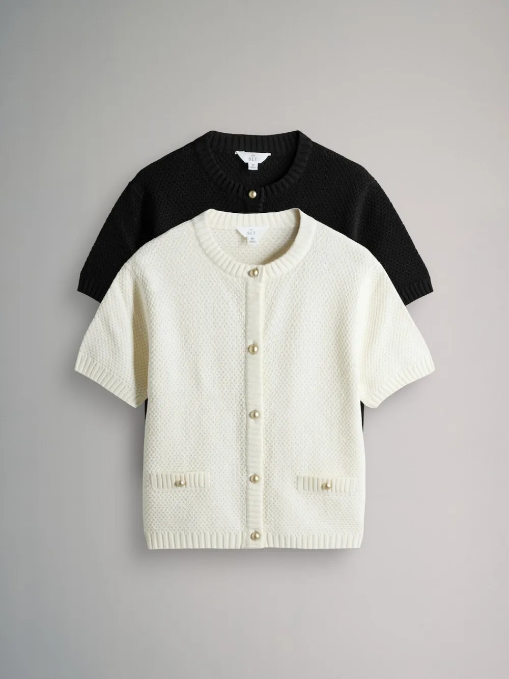 Be the first to review “The Set 2 Pack Gold Button Knitted Short Sleeve Cardigans Cream/Black Outlet” Cancel reply