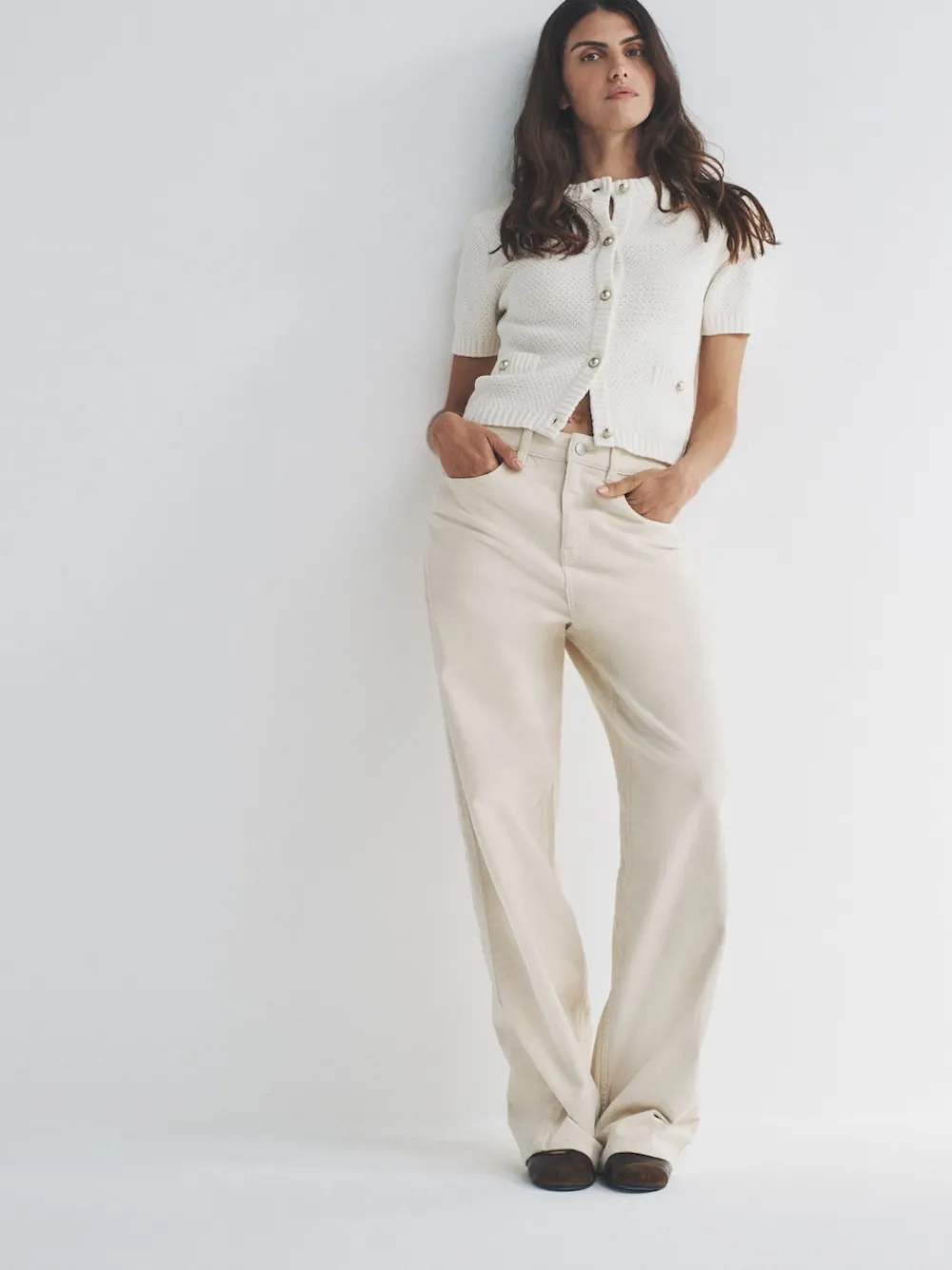THE SET’s 2 Pack Gold Button Knitted Short Sleeve Cardigans offers two chic, versatile layering pieces. This set includes one cardigan in creamy white and one in classic black, both crafted from a soft cotton blend. Each features a classic crew neck, neat short sleeves, a full button-down front with elegant gold button details and two small front patch pockets for a polished finish. 2 pack Soft cotton blend Gold buttons Pocket detail 2 x Cardigan 60% Cotton, 40% Acrylic.